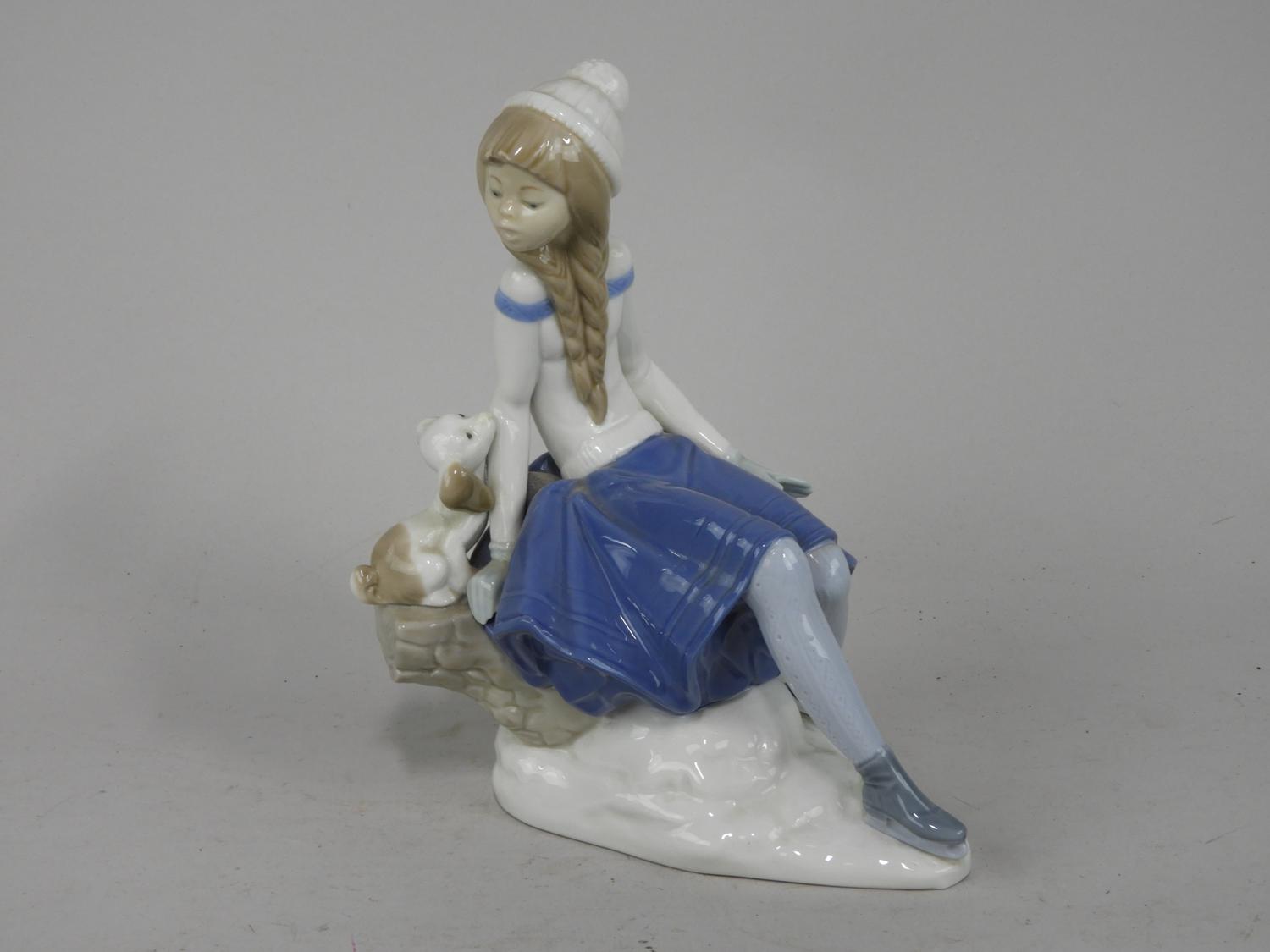 lladro style figurine of a girl with puppy