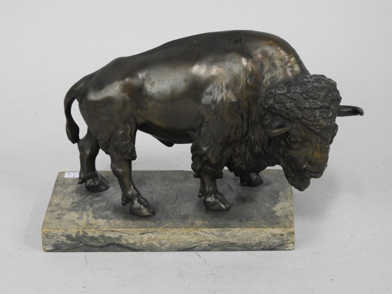 cast bronze patinated buffalo on stand