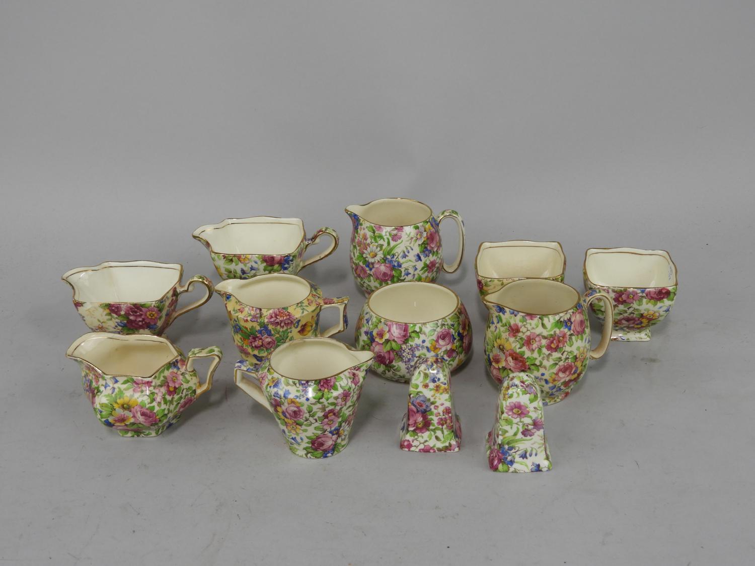lot of royal winton chintz pattern cream & sugars and shakers.