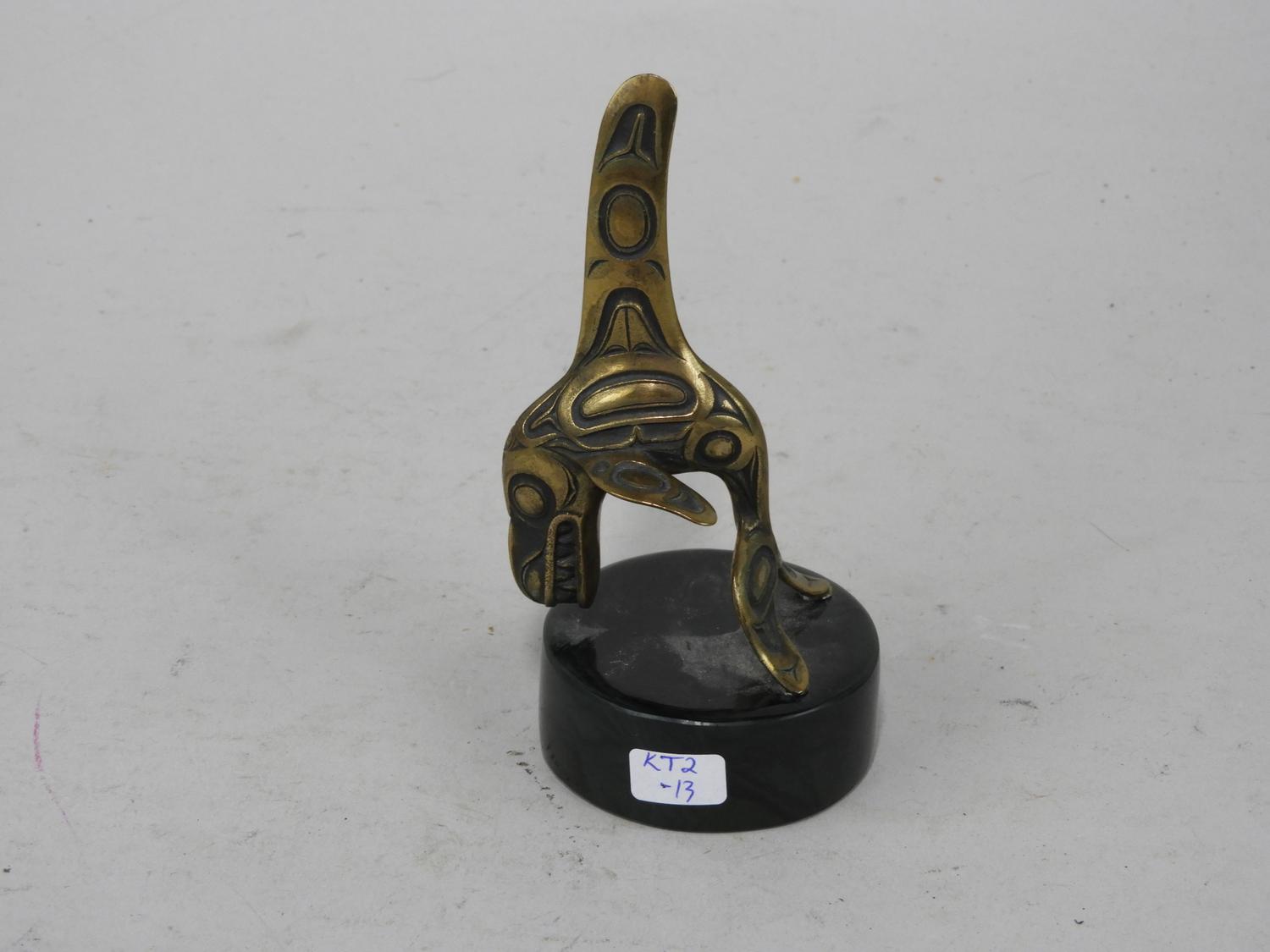 after bill reid, brass sculpture on stand, "killer whale", ht. 4 1/2"
