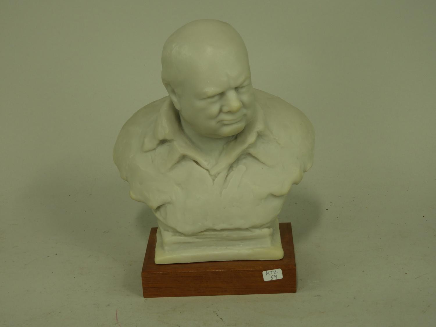 bust of winston churchill on wood