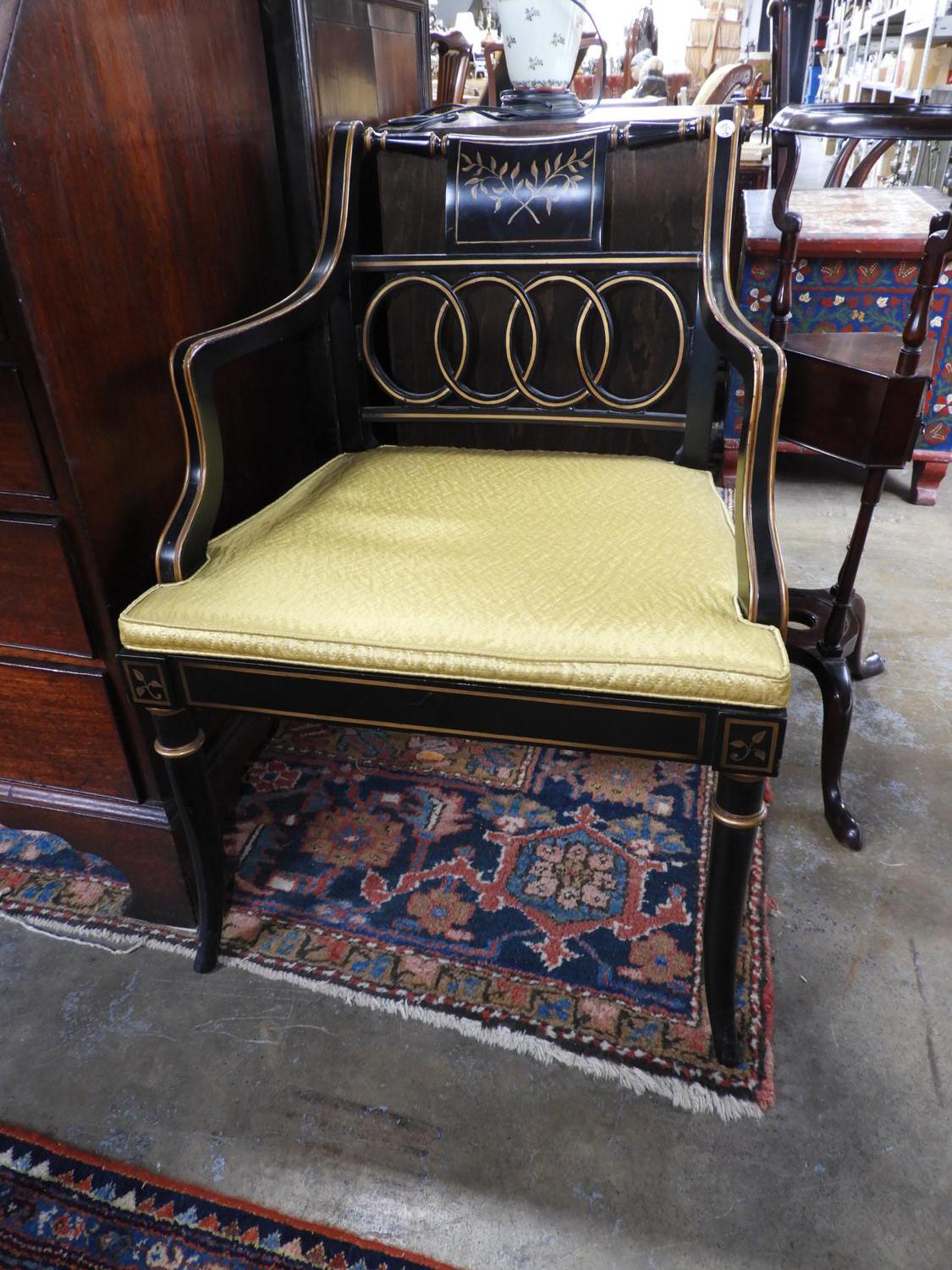 pair of empire style parcel gilt armchairs