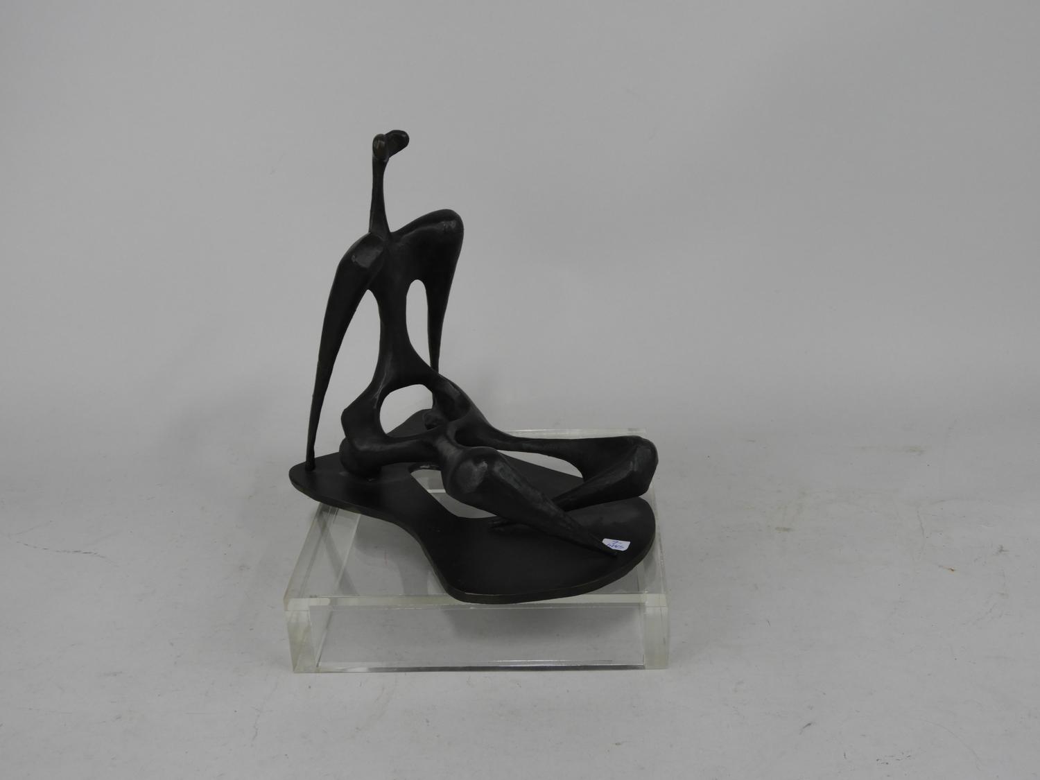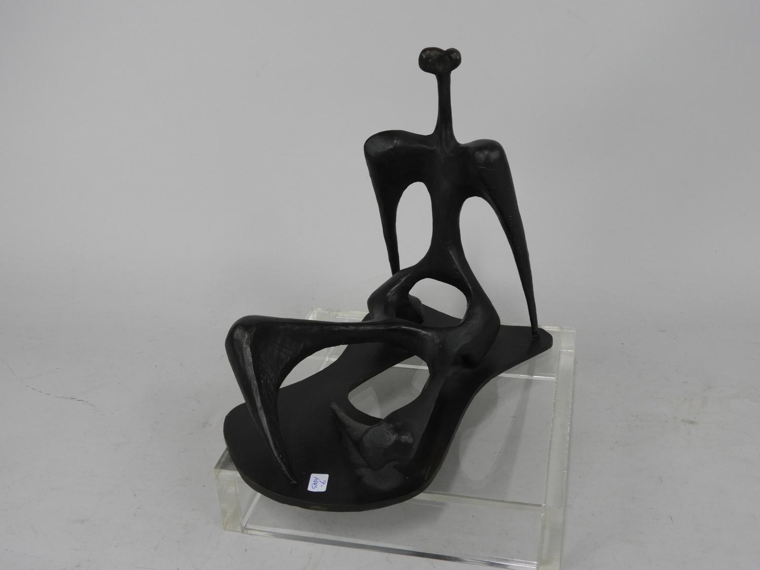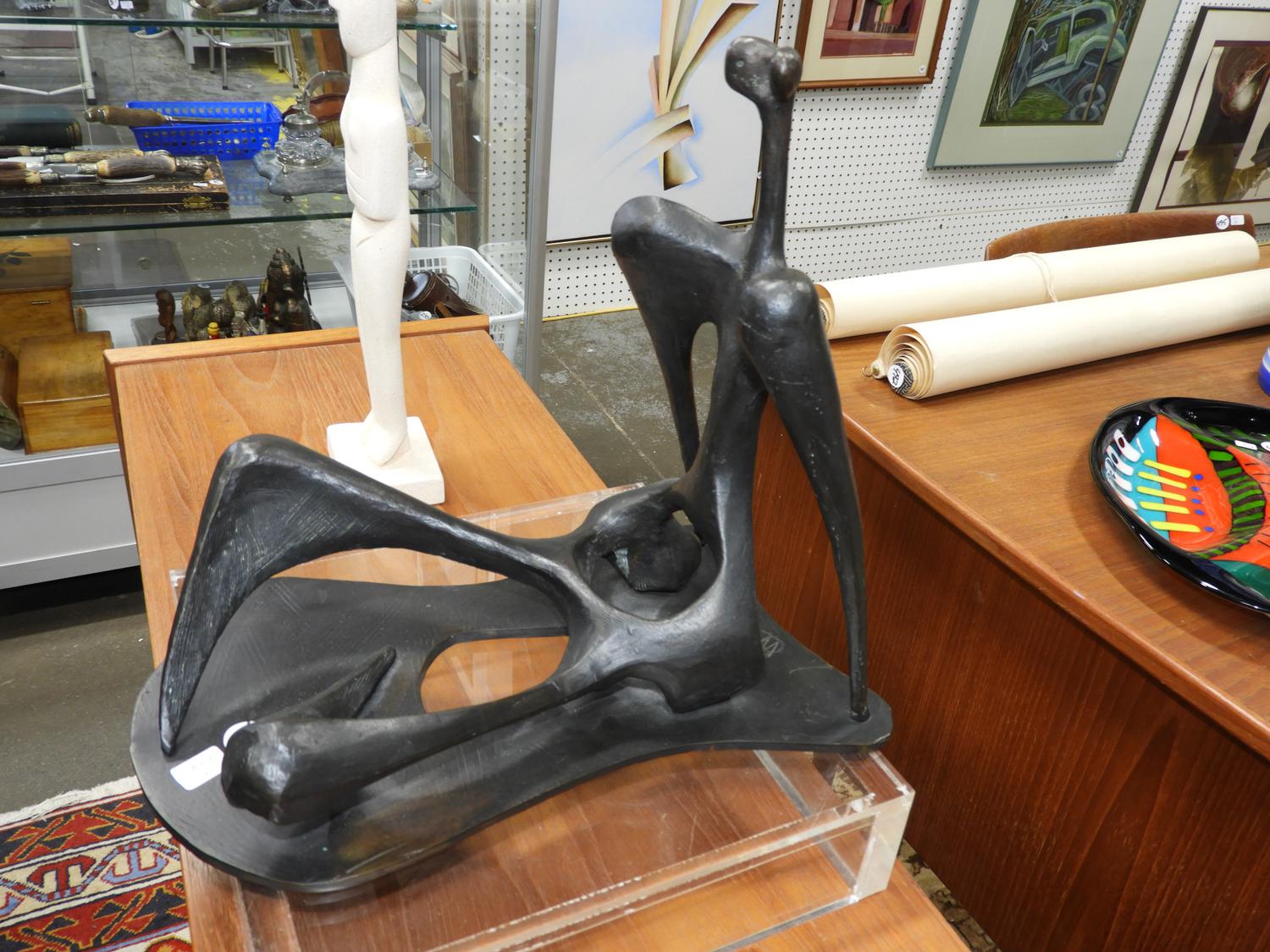 bearing initial c.m., bronze, "abstract seated figure".