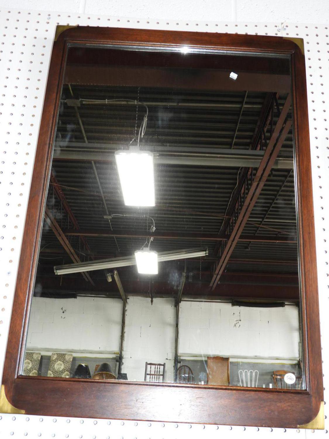 mahogany finish brass accented wall mirror.