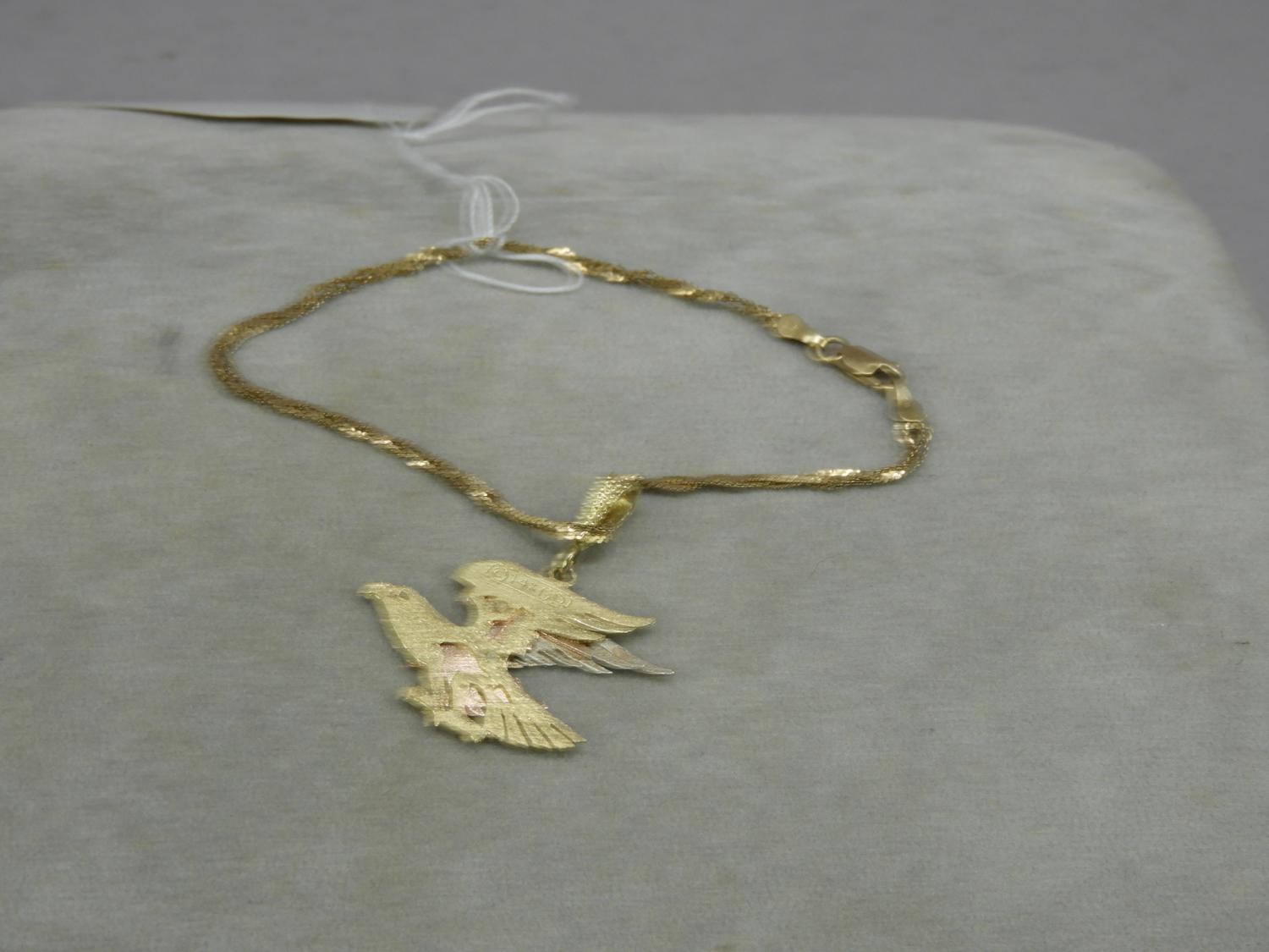 10k pink gold bracelet with 14k tri gold eagle pendant, 3grams