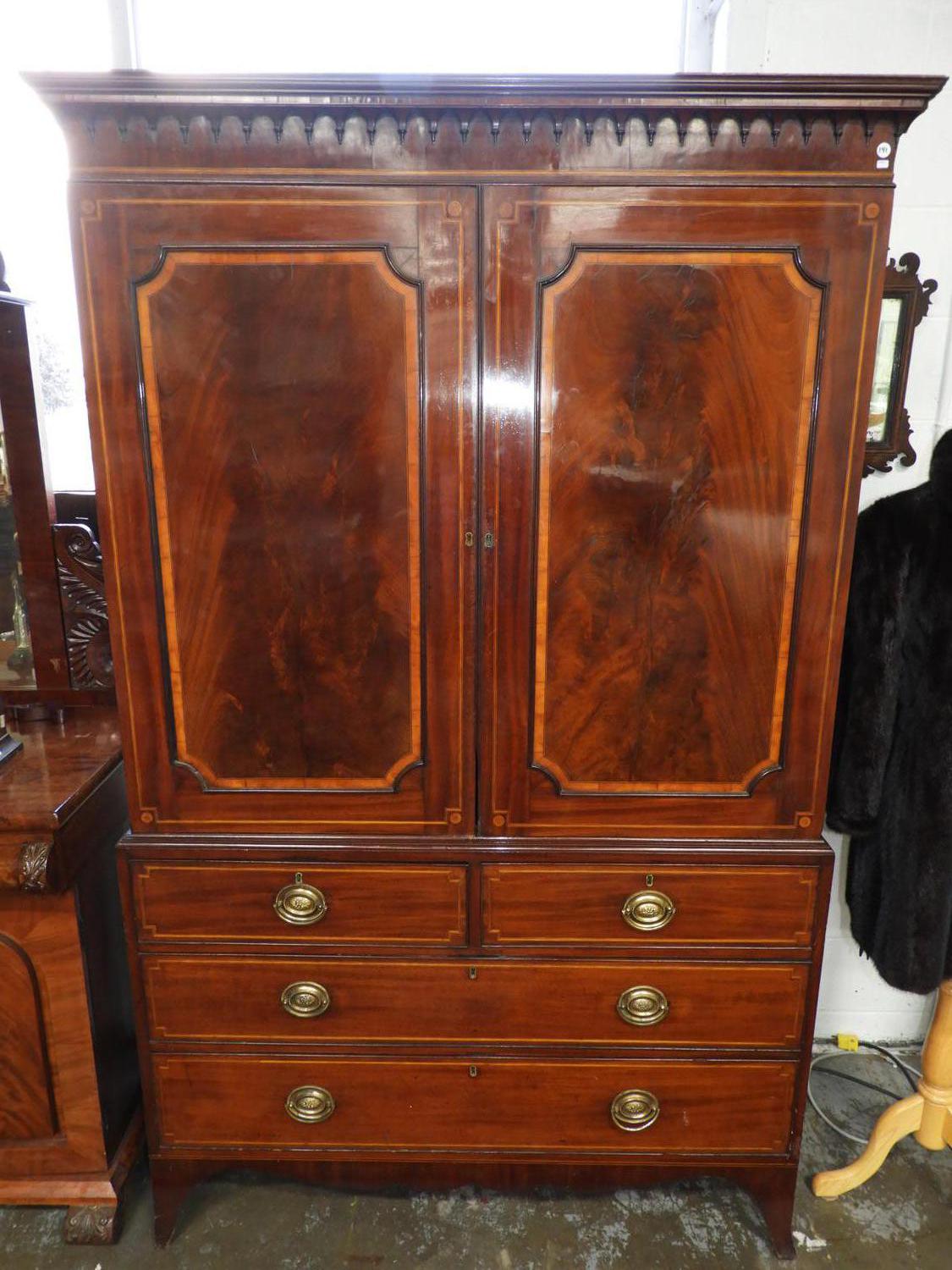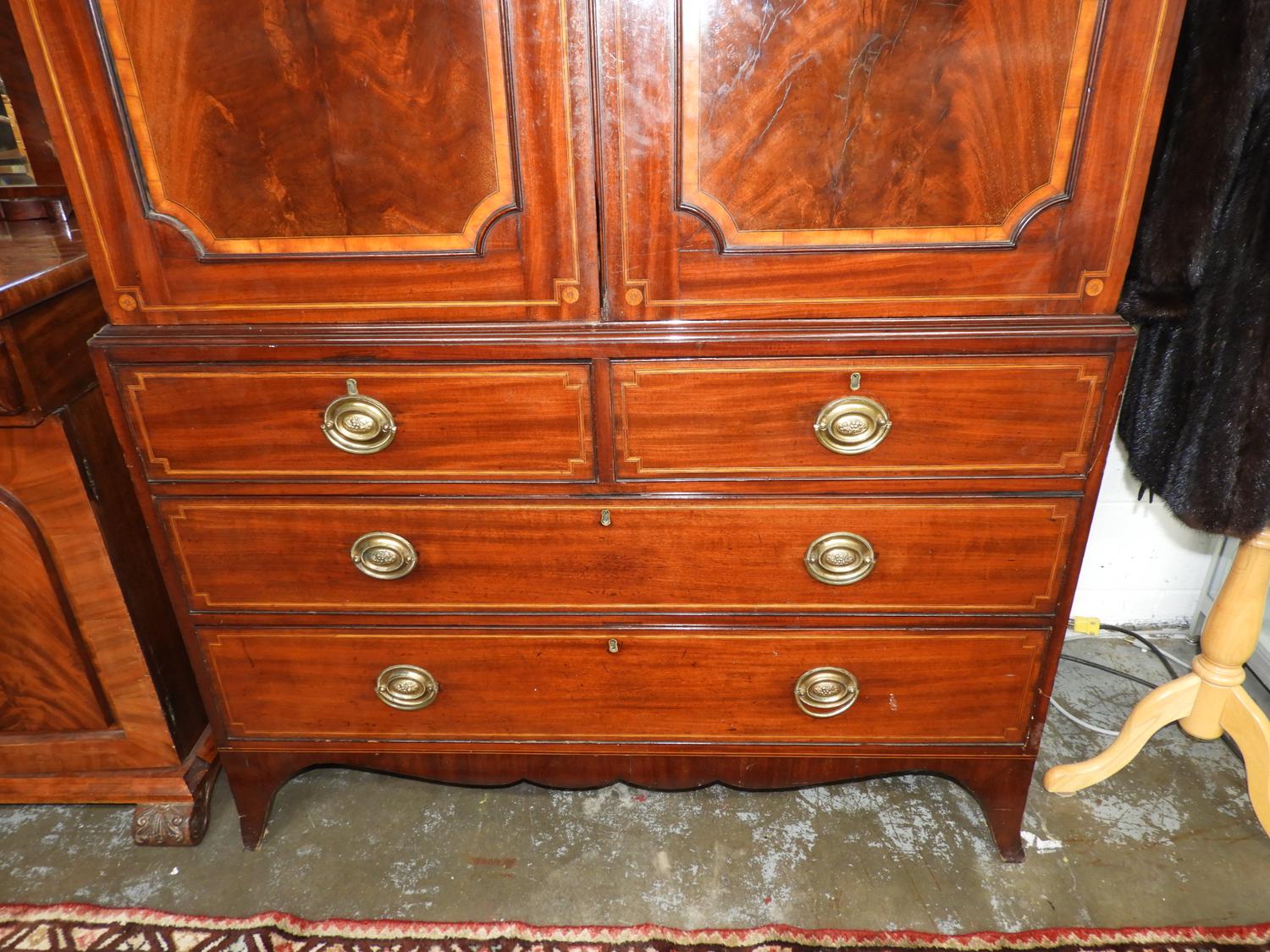 georgian mahogany inlaid linen press