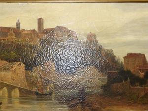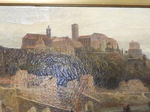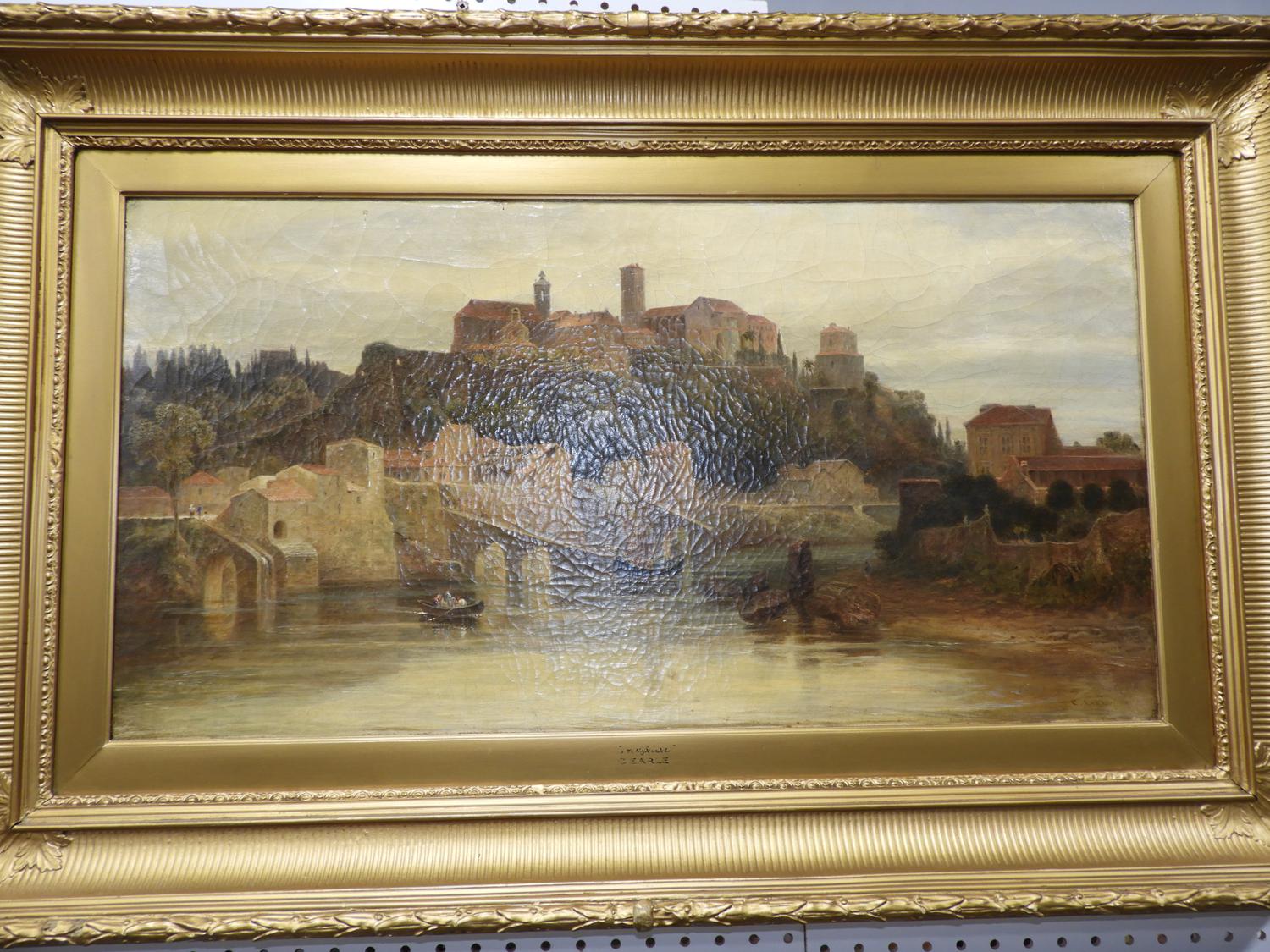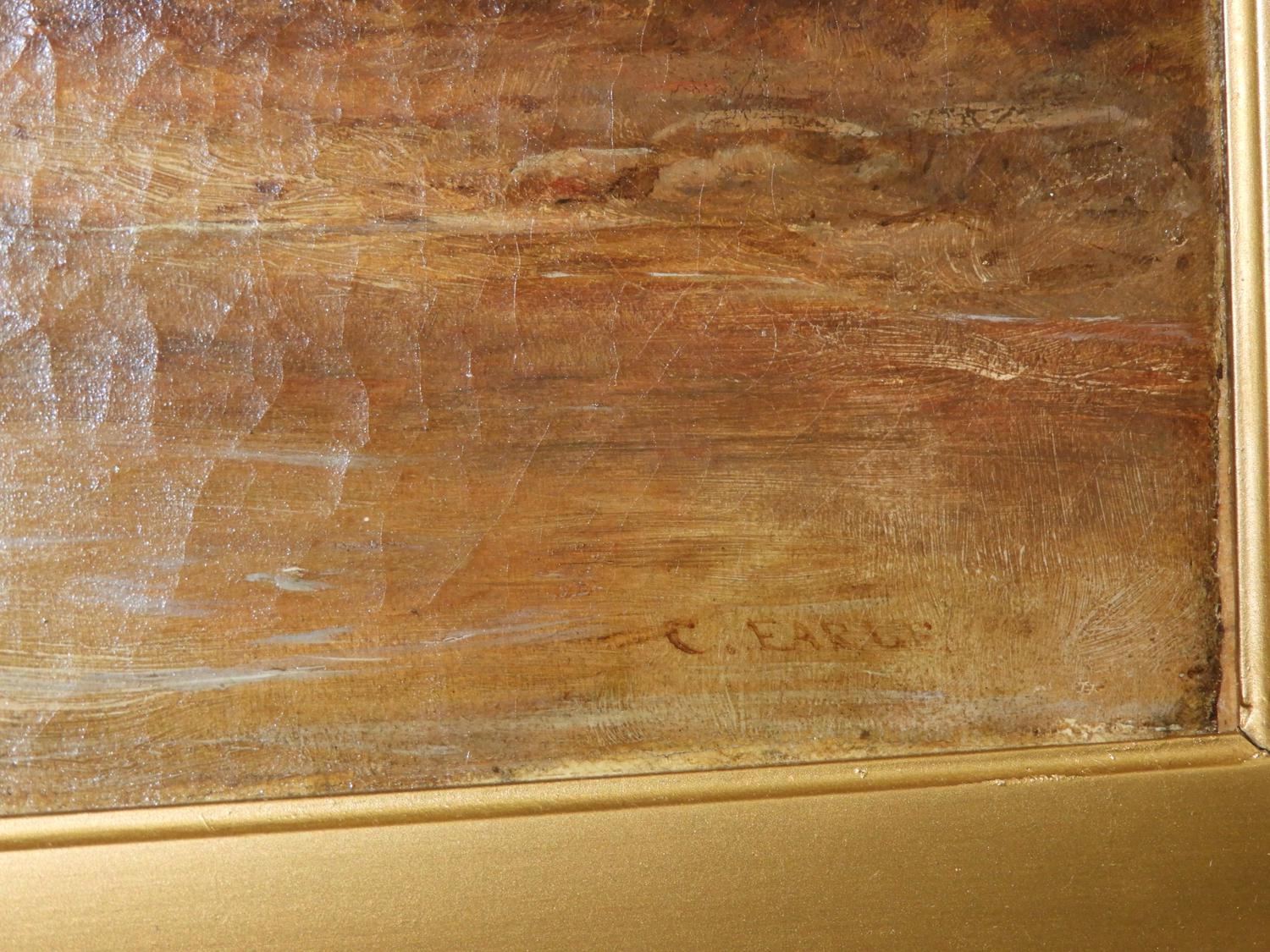 charles earle (1832-1893), oil on canvas, 16" x 30", "untitled fortified harbour".