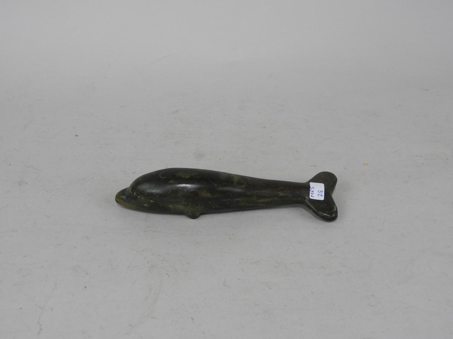 carved hardstone dolphin figurine, length 8"