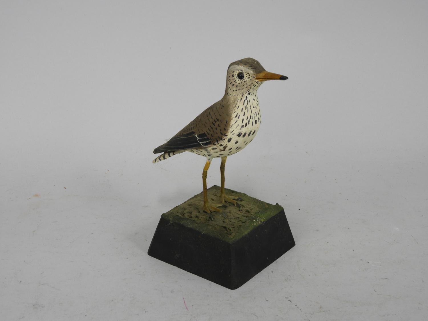 handpainted carved wood sandpiper on stand, 6 3/4"