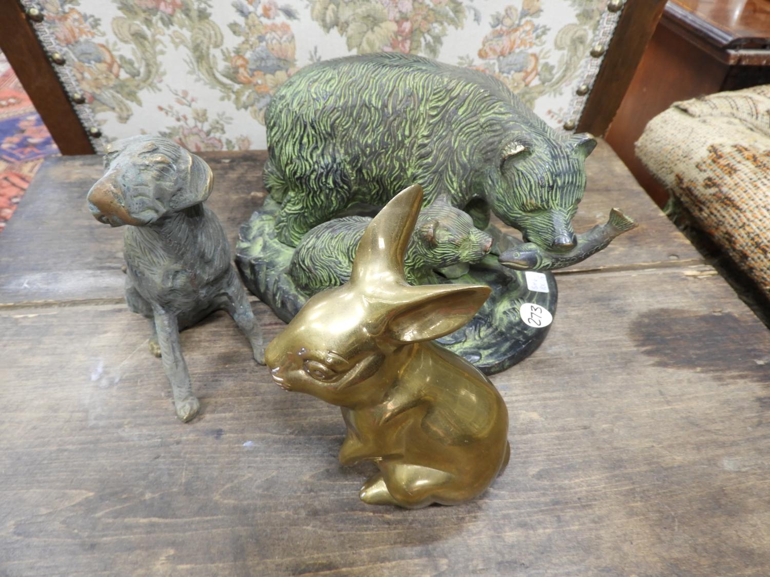 brass bear, bunny, retreiver figures