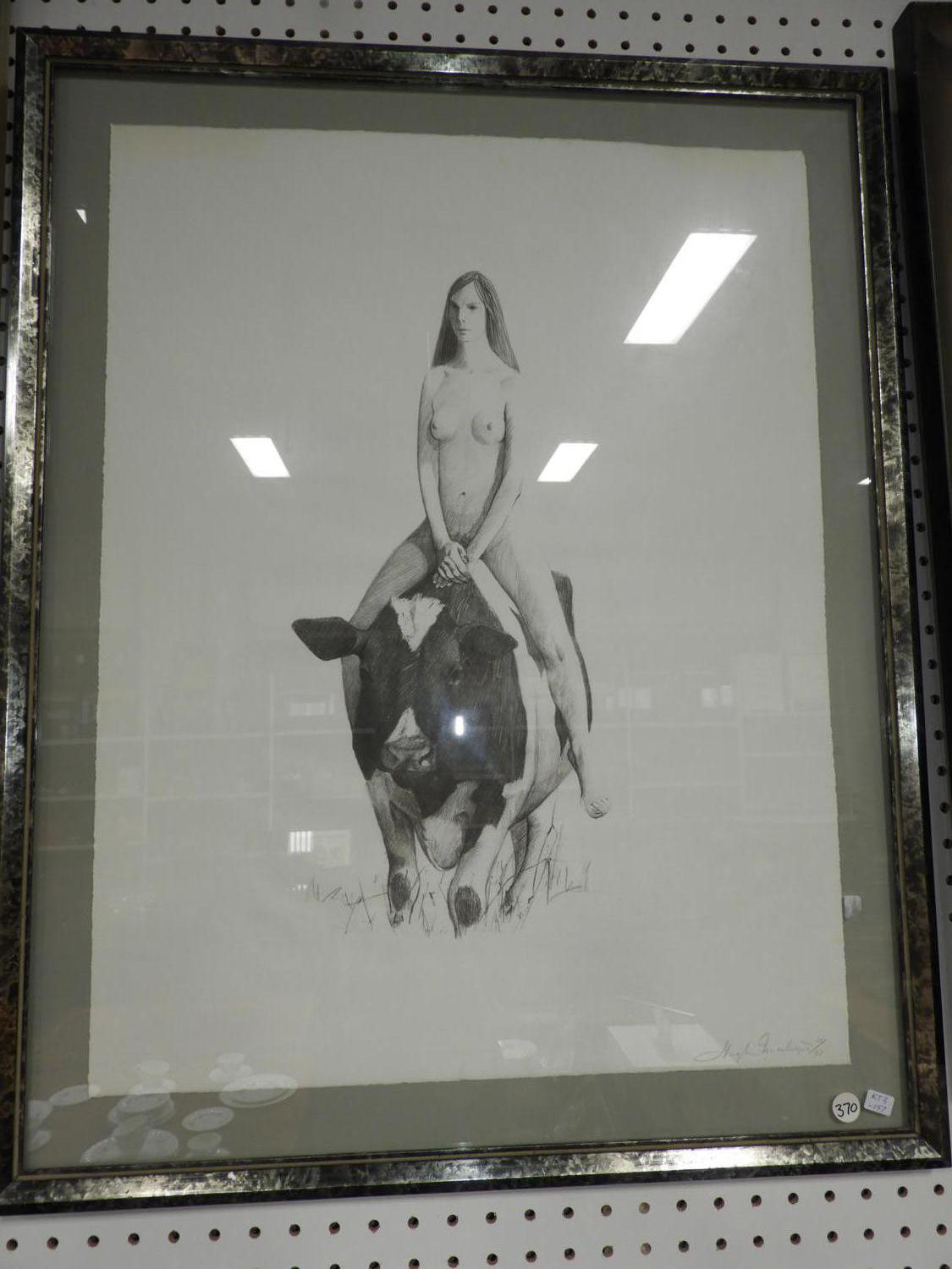 hugh seaforth mackenzie, lithograph 11/30, 25" x 20", "nude riding a cow".