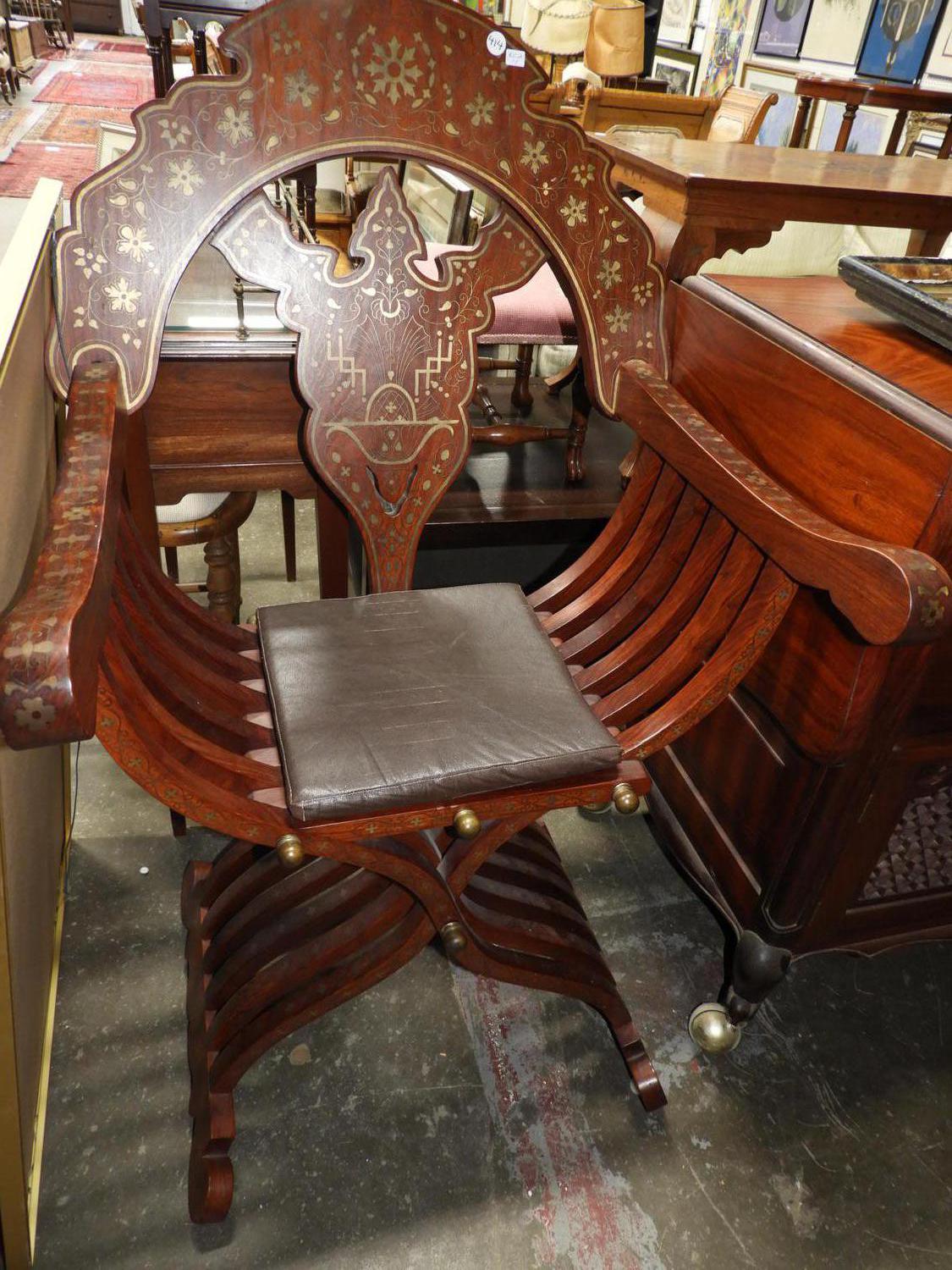 middle eastern brass inlaid armchair