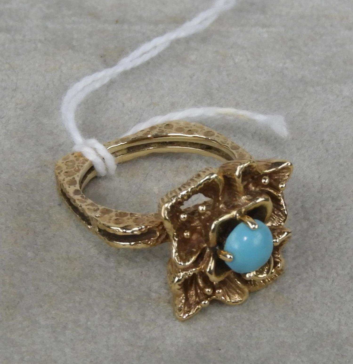 14k yellow gold crate turquoise ring