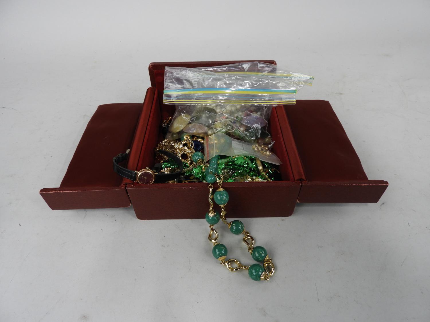 box of misc costume jewelery, inclu broken agate necklace