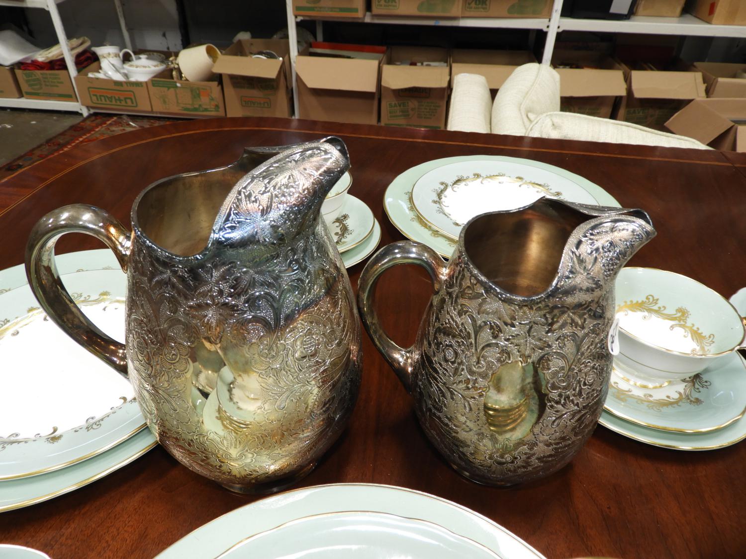 two silver plate pitchers.