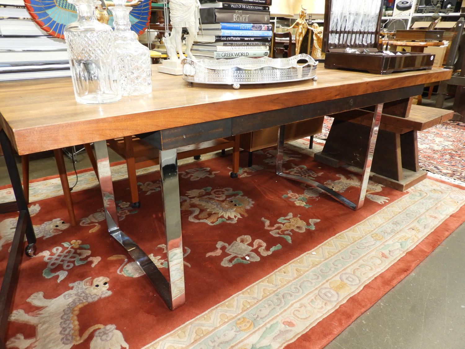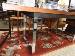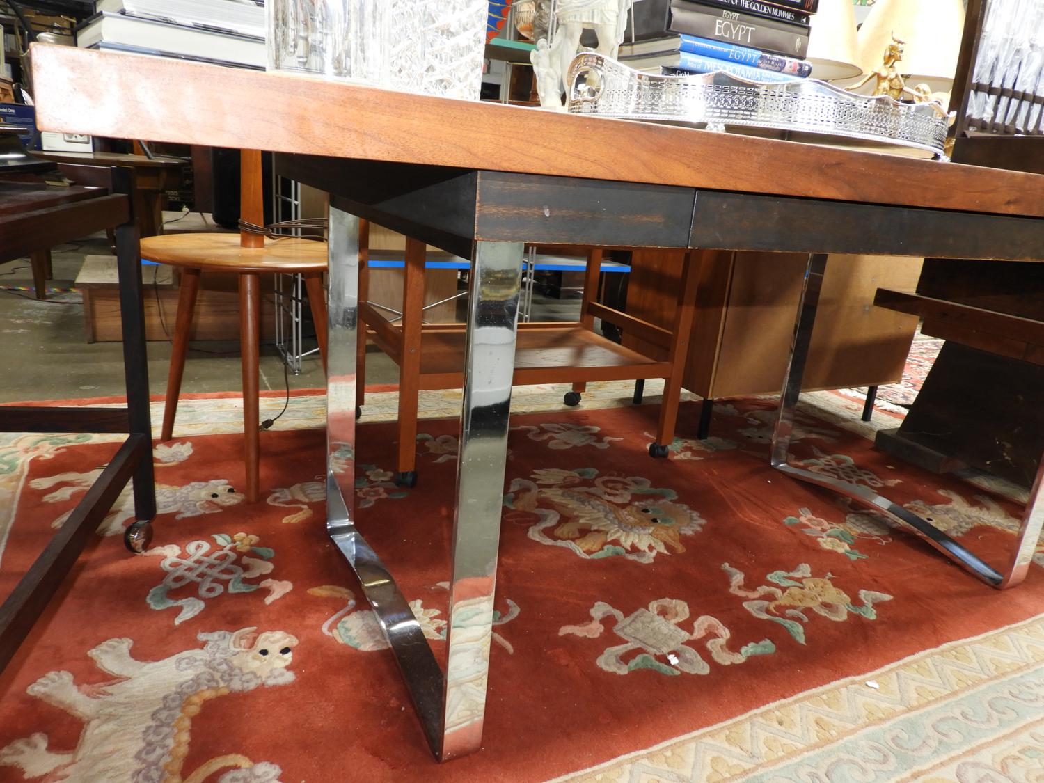 mid 20th century partners desk with flat steel legs.