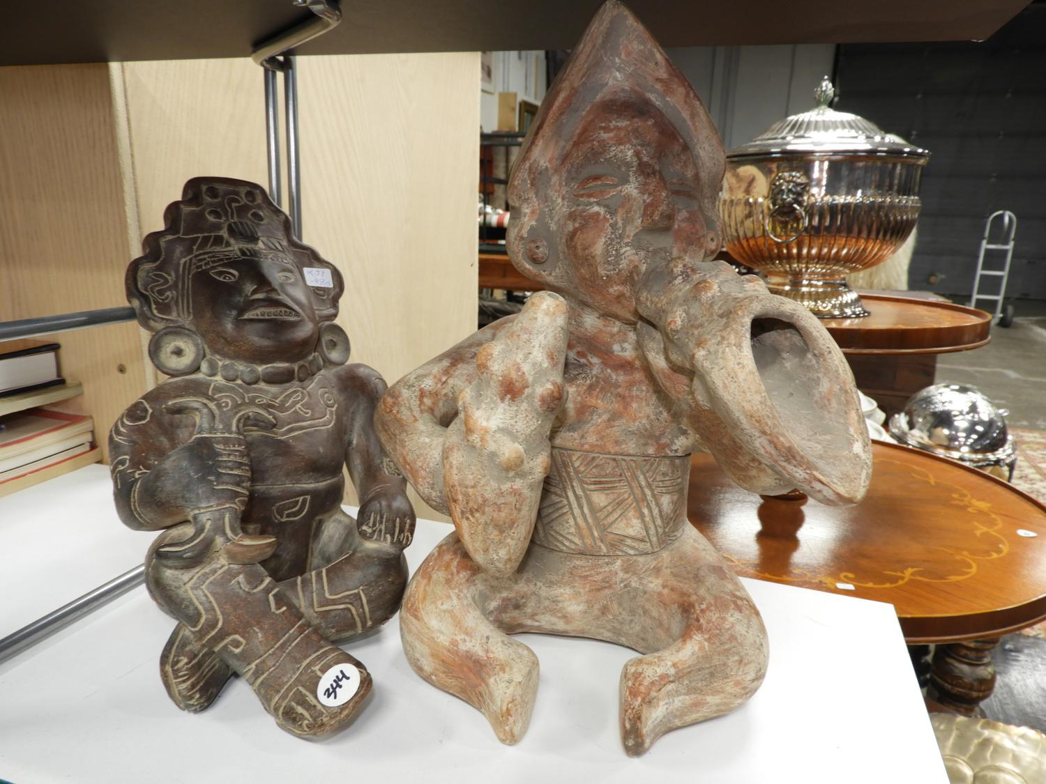 two pre columbian style terra cotta figures