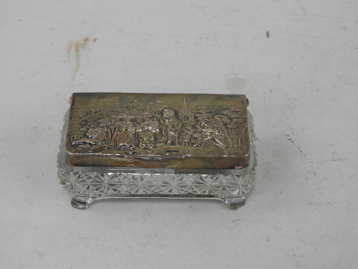 hallmarked sterling silver and crystal dresser box, length 3 3/4"