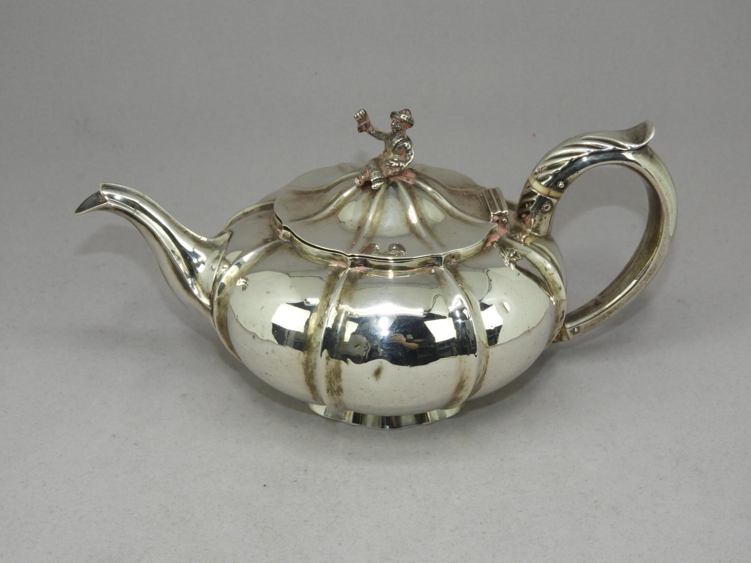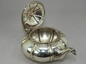 18th century hallmarked stelring silver teapot, hallmarked london 1792, with figural finial, 8 1/2" x 14 1/2"