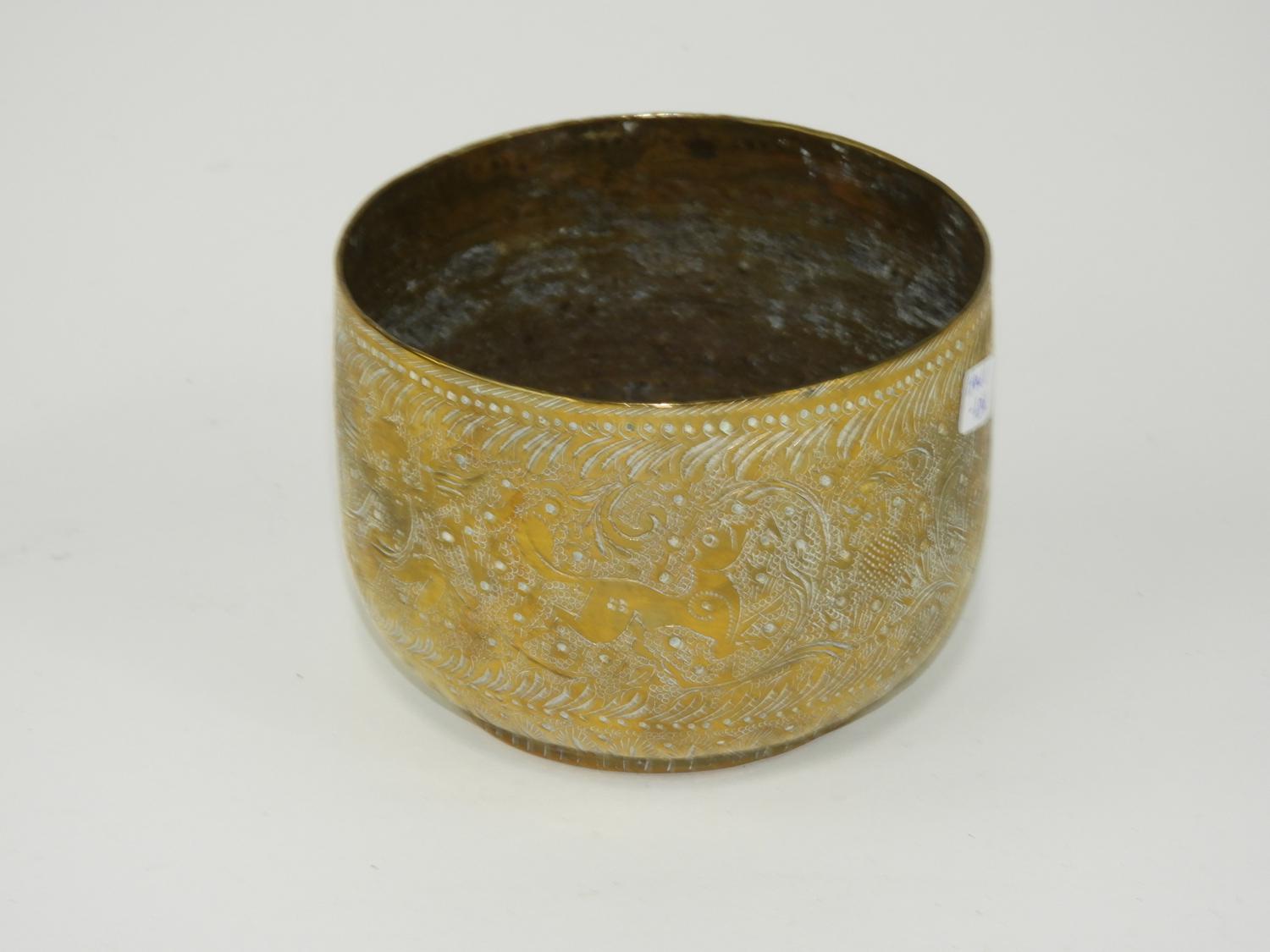 indian brass bowl, heavily chased