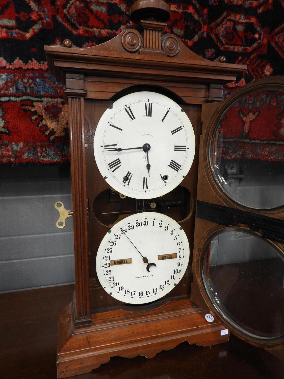 19th century american walnut double dial mantle clock, seth thomas clock co