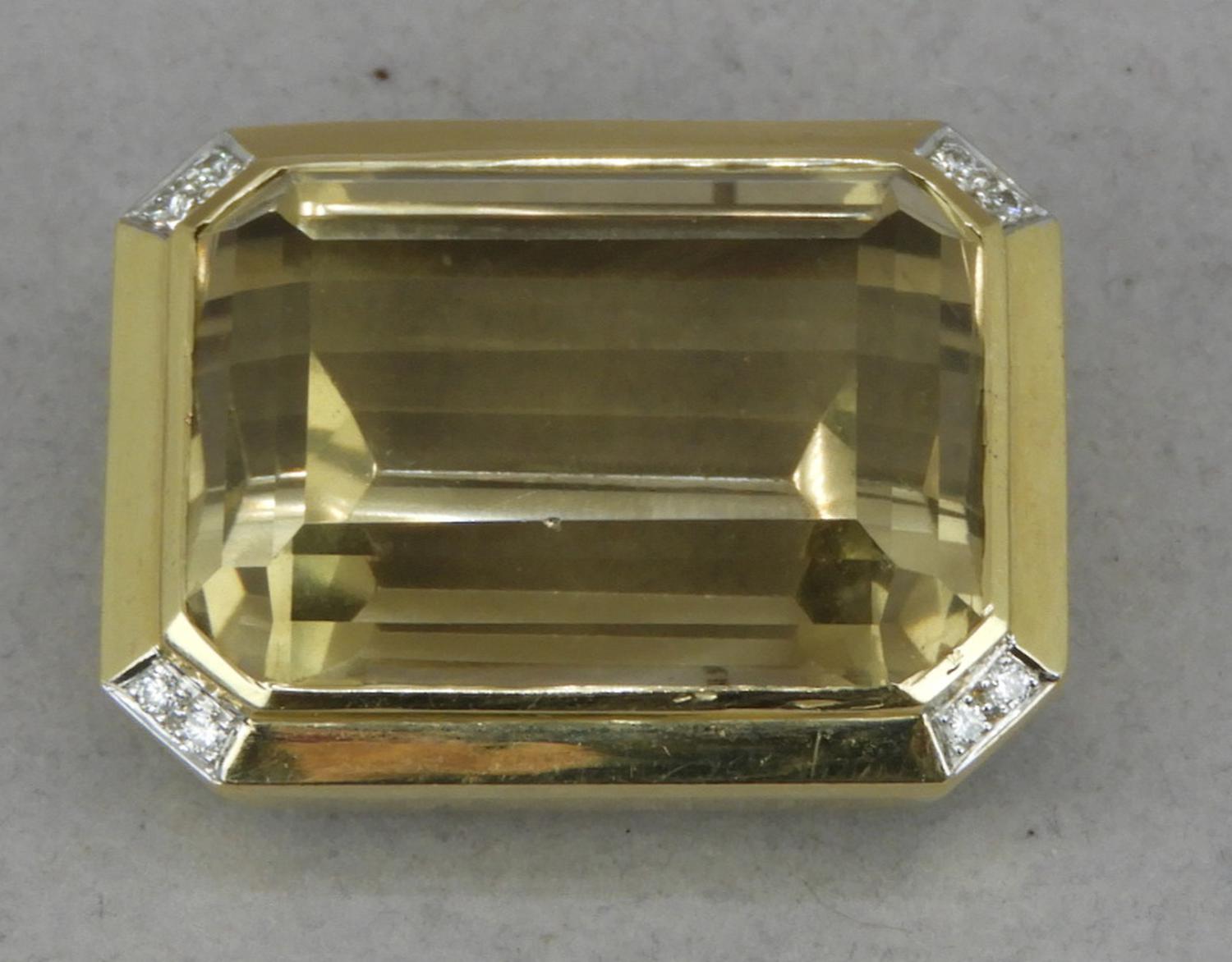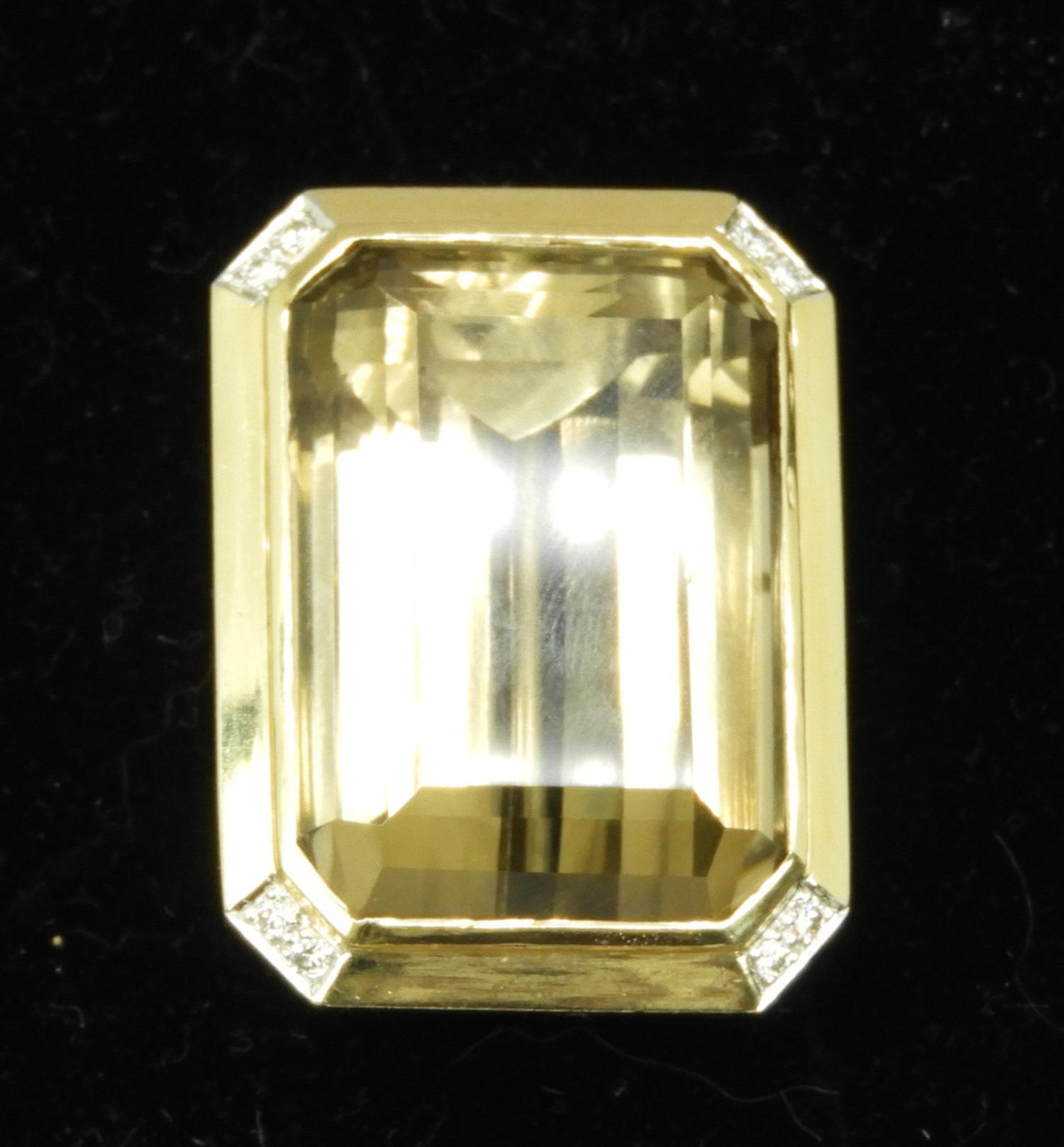 14k yellow gold custom made smoky quartz diamond pendant brooch with appraisal