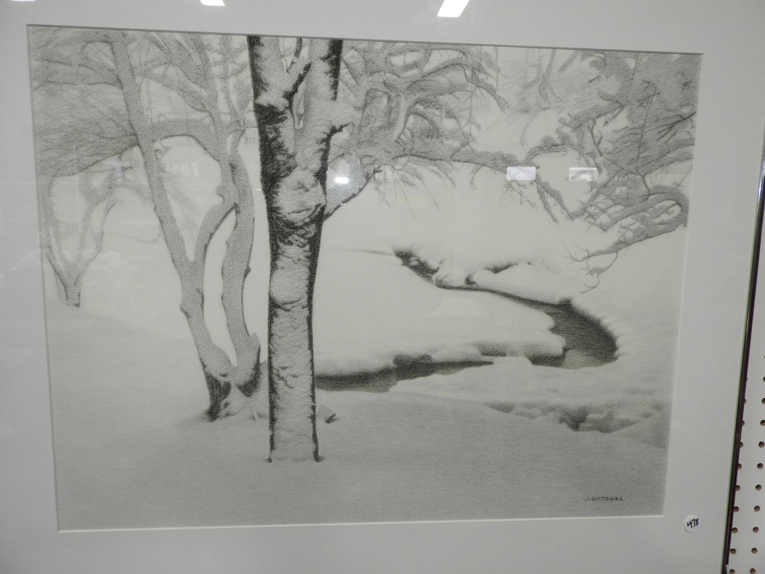 jiri ustohal, pastel, 19" x 25", "trees in winter".