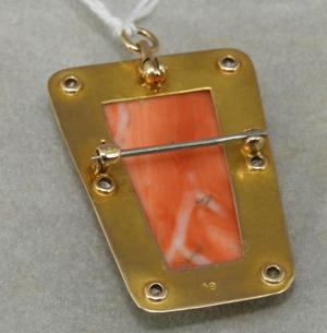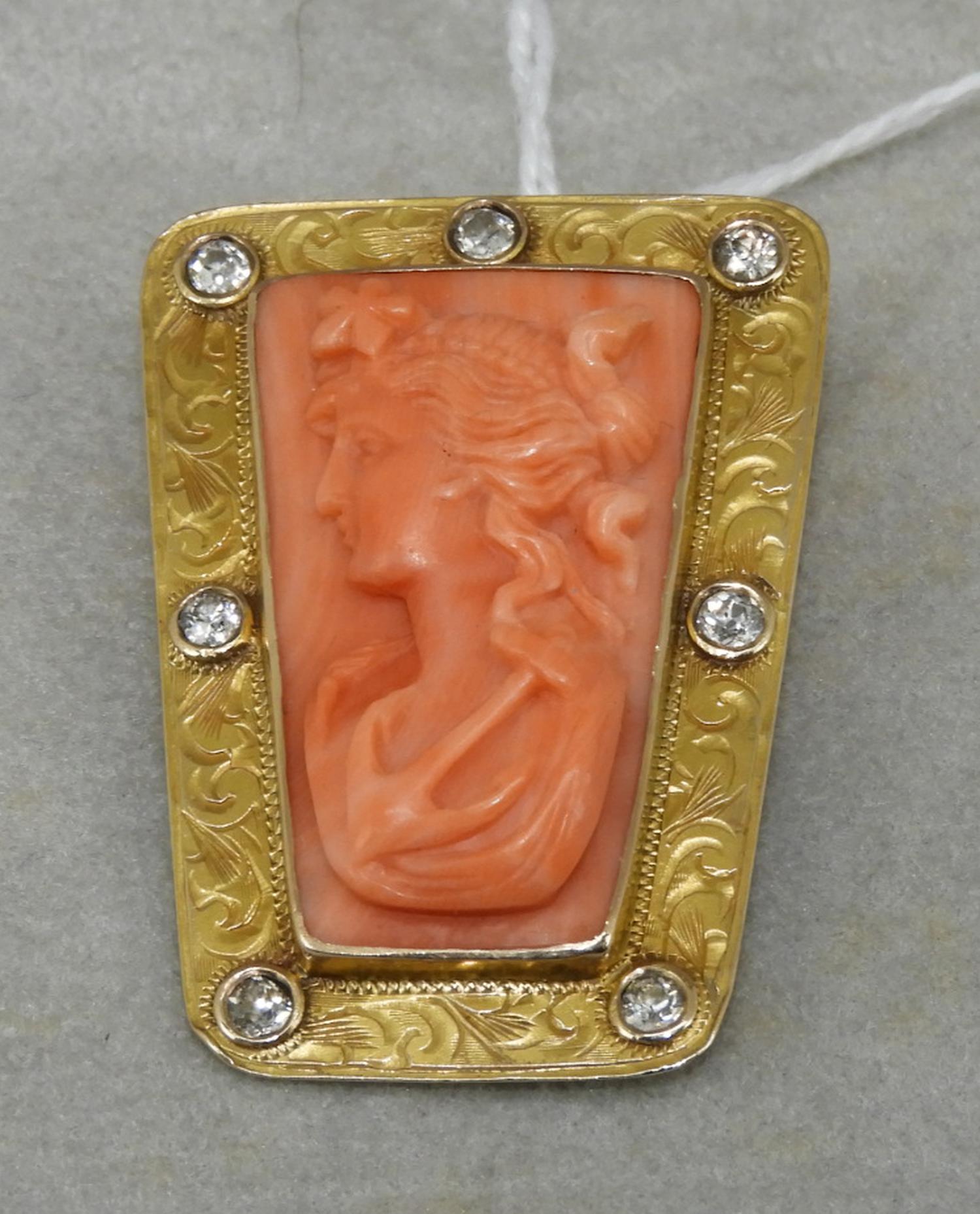 victorian pink gold diamond carved coral cameo brooch pendant