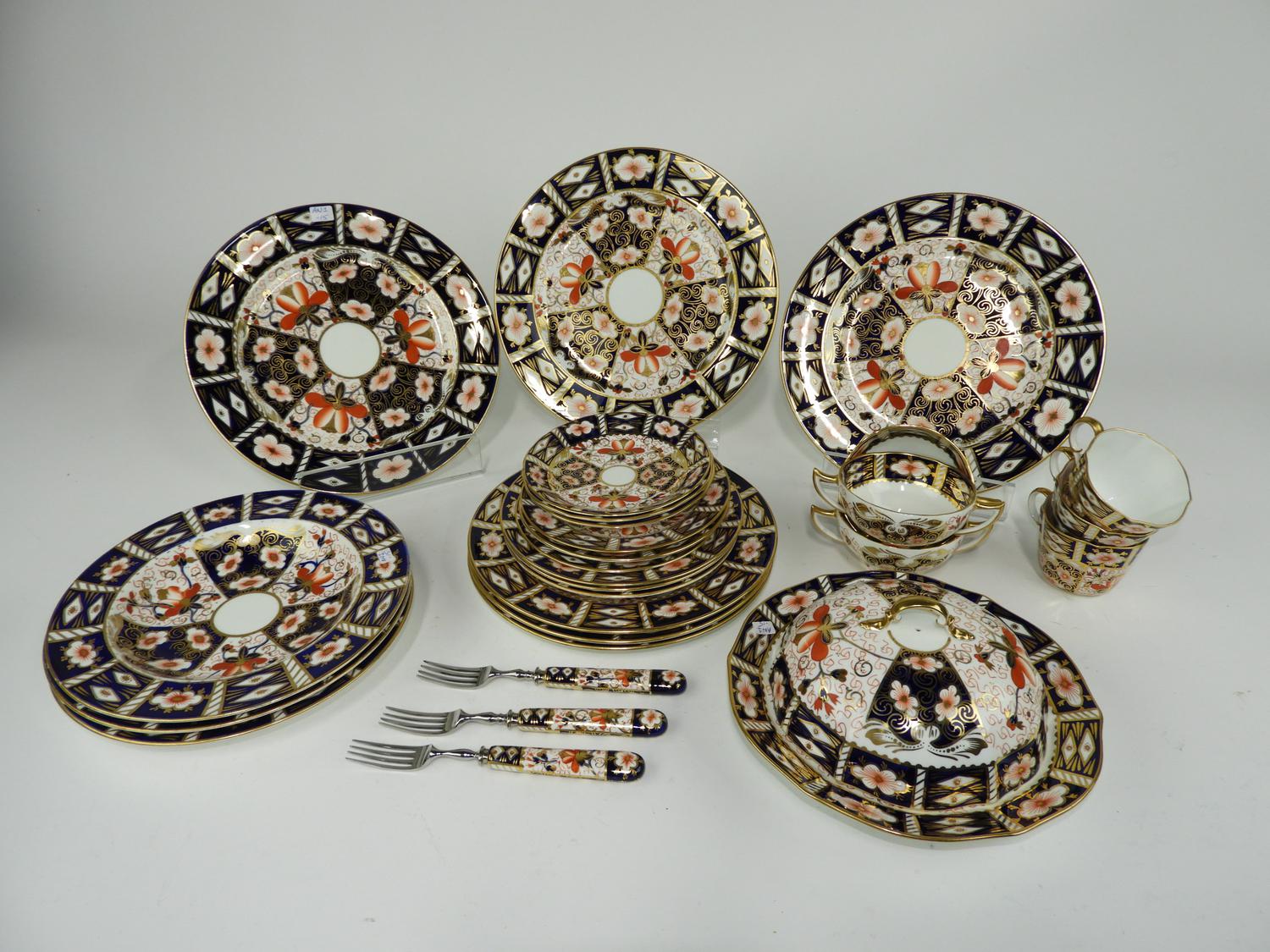 lot of royal crown derby imari pattern china dinnerware, 20+ pcs