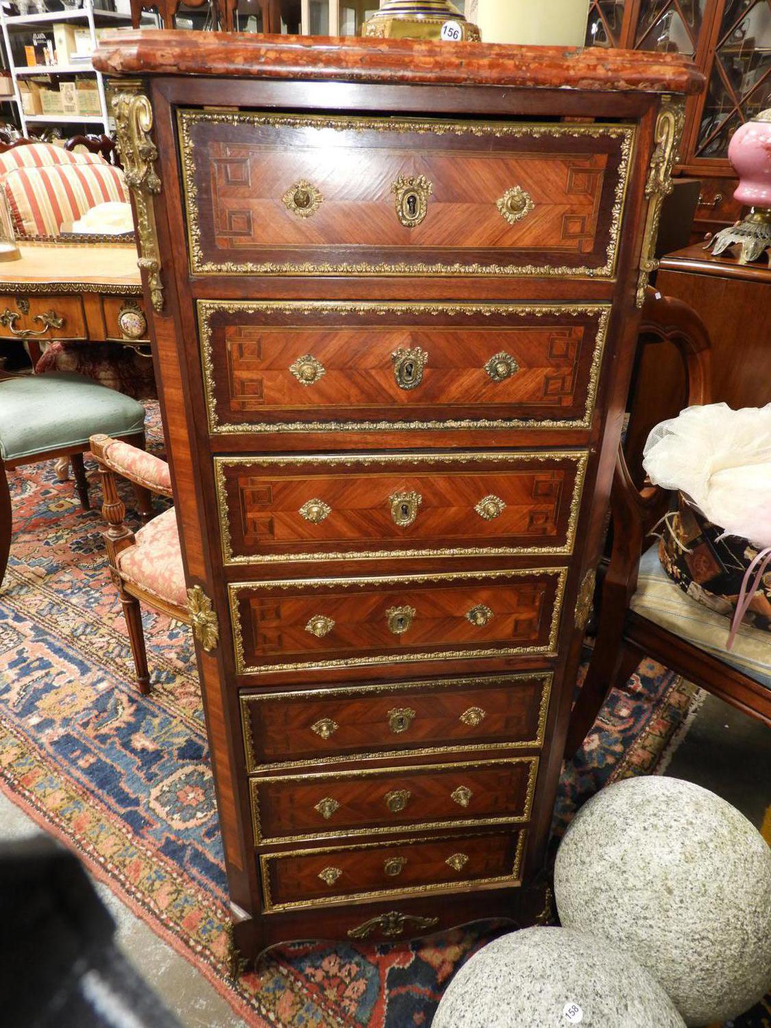 louis xv-style parquetry inlaid seven drawer marble top chest