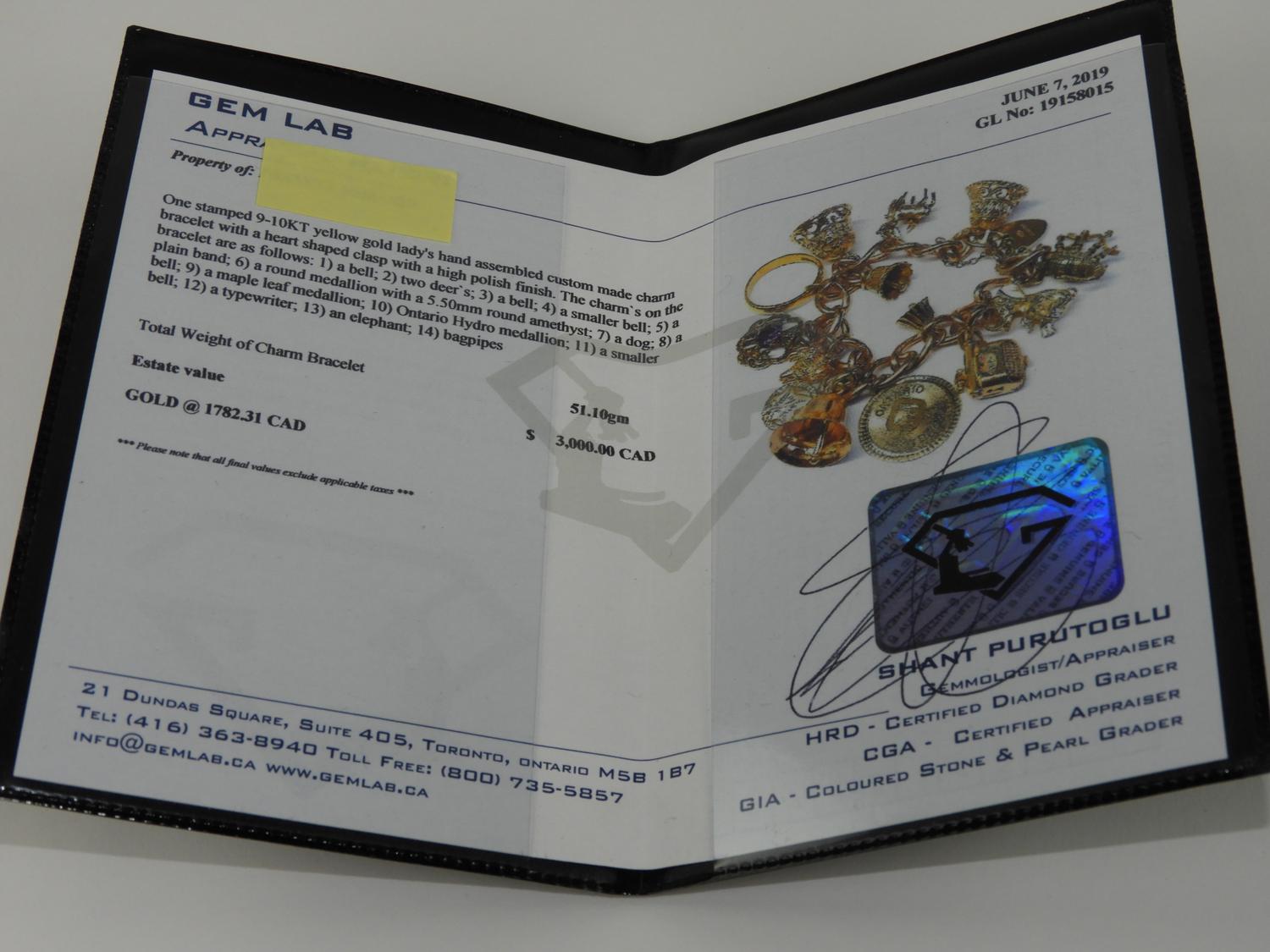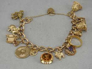 9kt pink gold charm bracelet, 51.1 grams, with appraisal