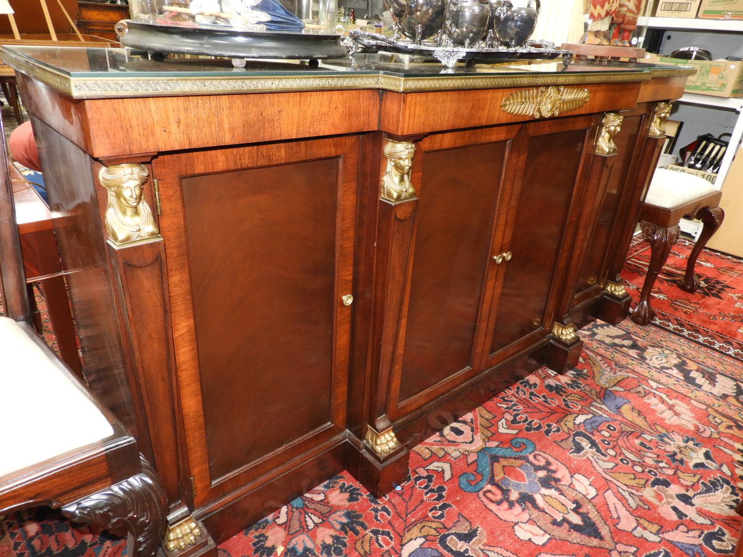 empire style cross banded mahogany breakfront side cabinet, by guildhall
