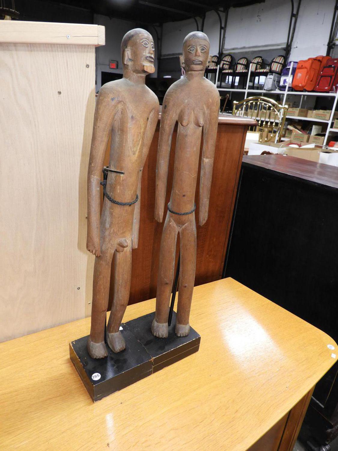 african carved wood male and female, ht. 24 1/2"