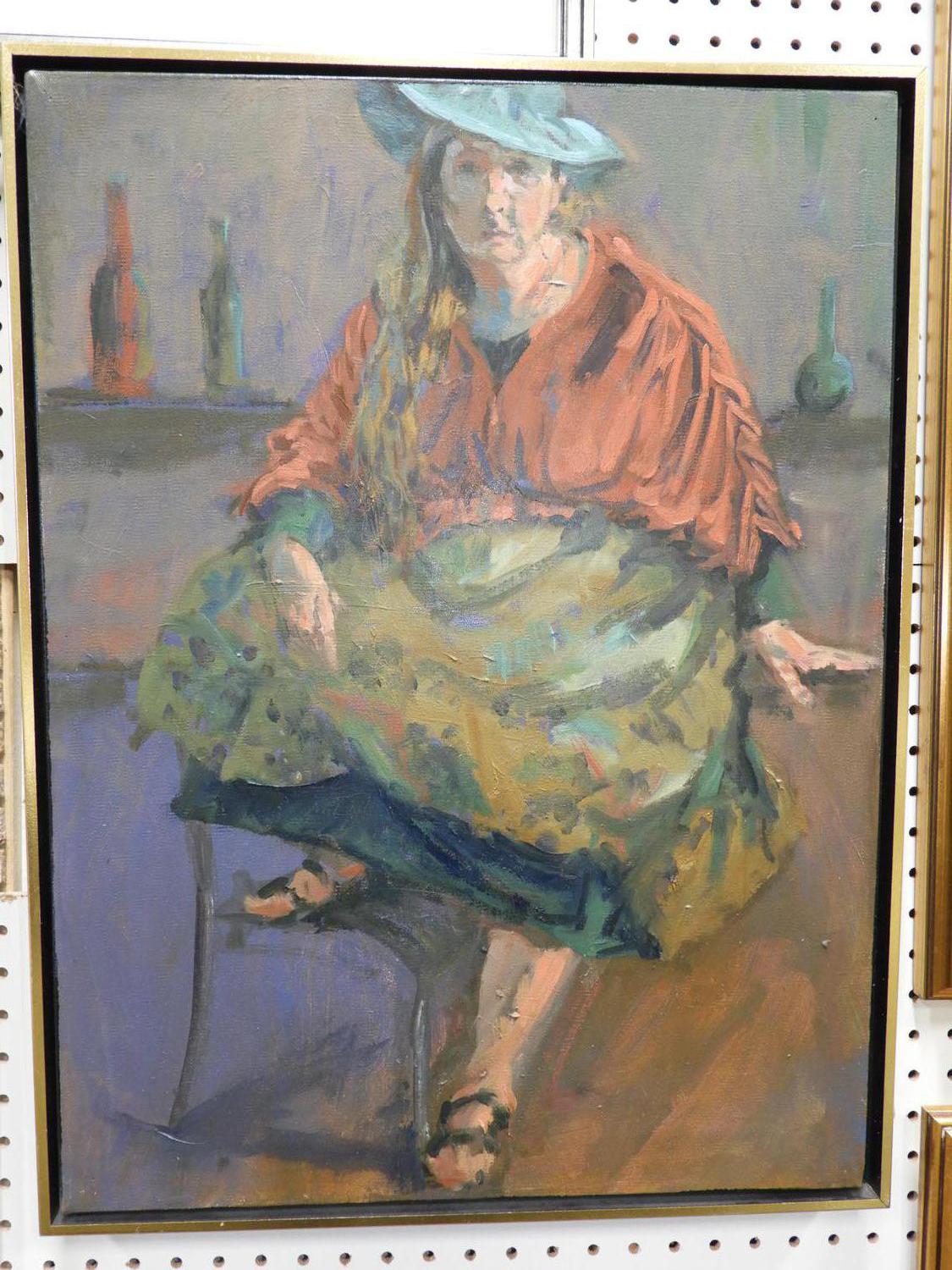 unsigned oil on canvas, 24" x 18", "seated woman".