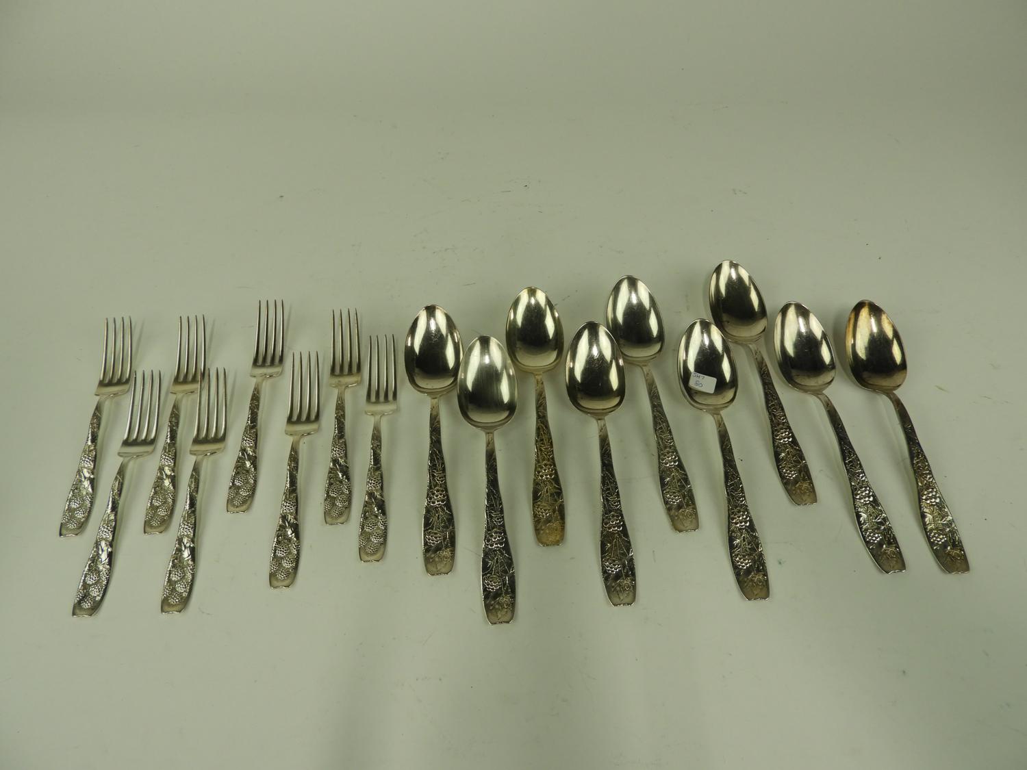 8 sterling silver forks, with 9 matching large spoons