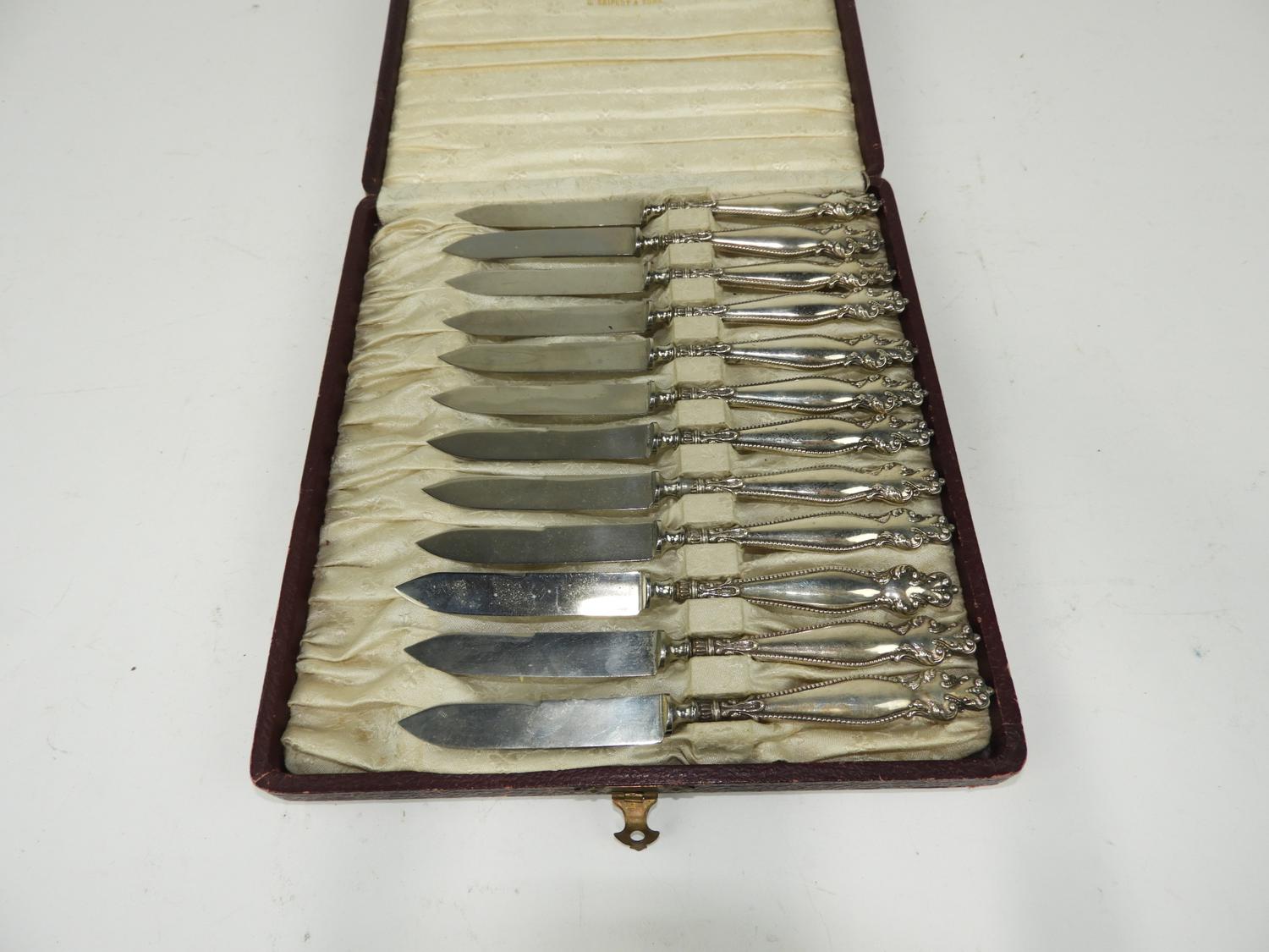 cased set of art nouveau sterling handled fruit knives.
