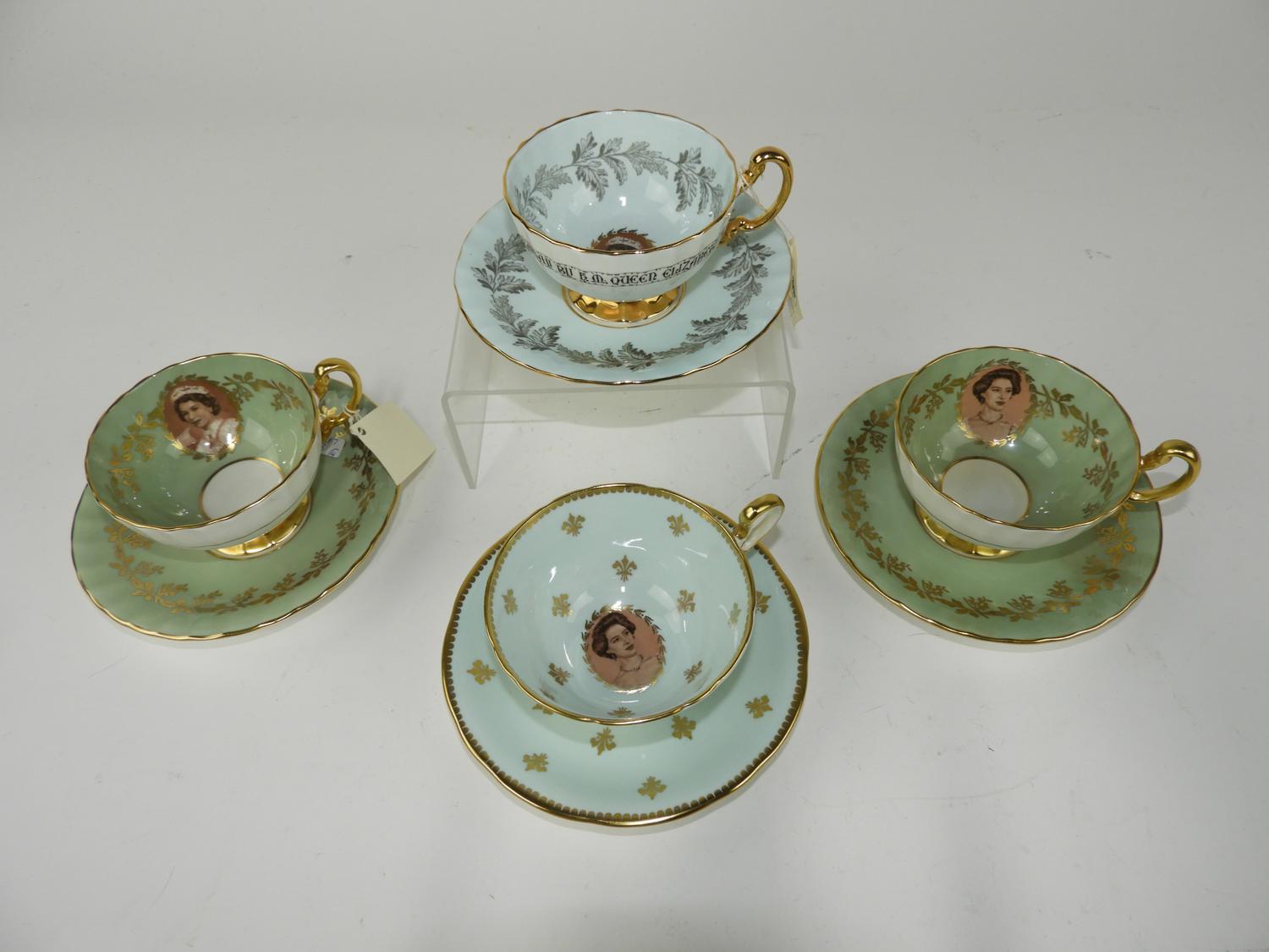 4 aynsley commemorative queen elizabeth teacups and saucers