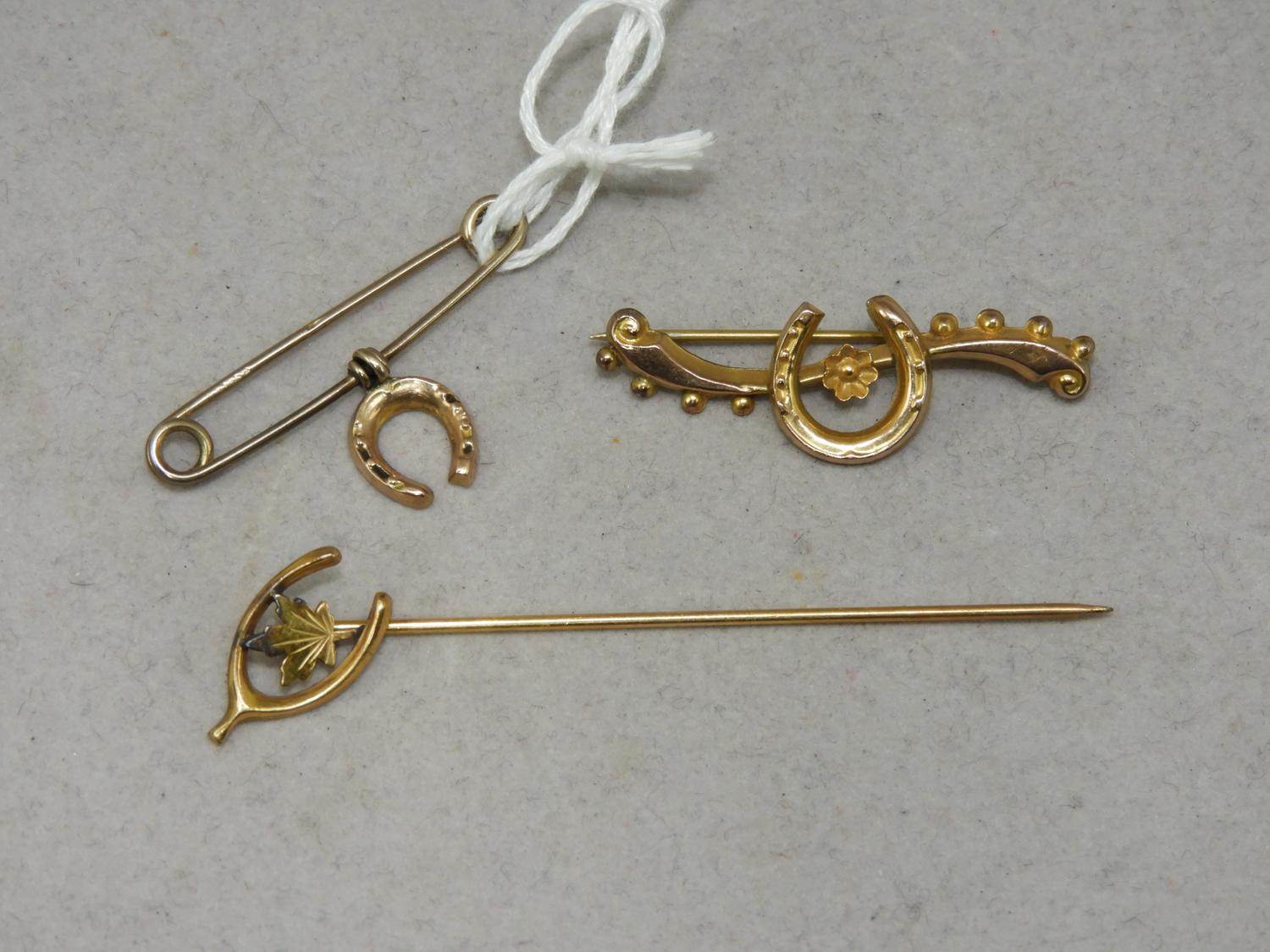 two victorian 9k gold horse shoe pins