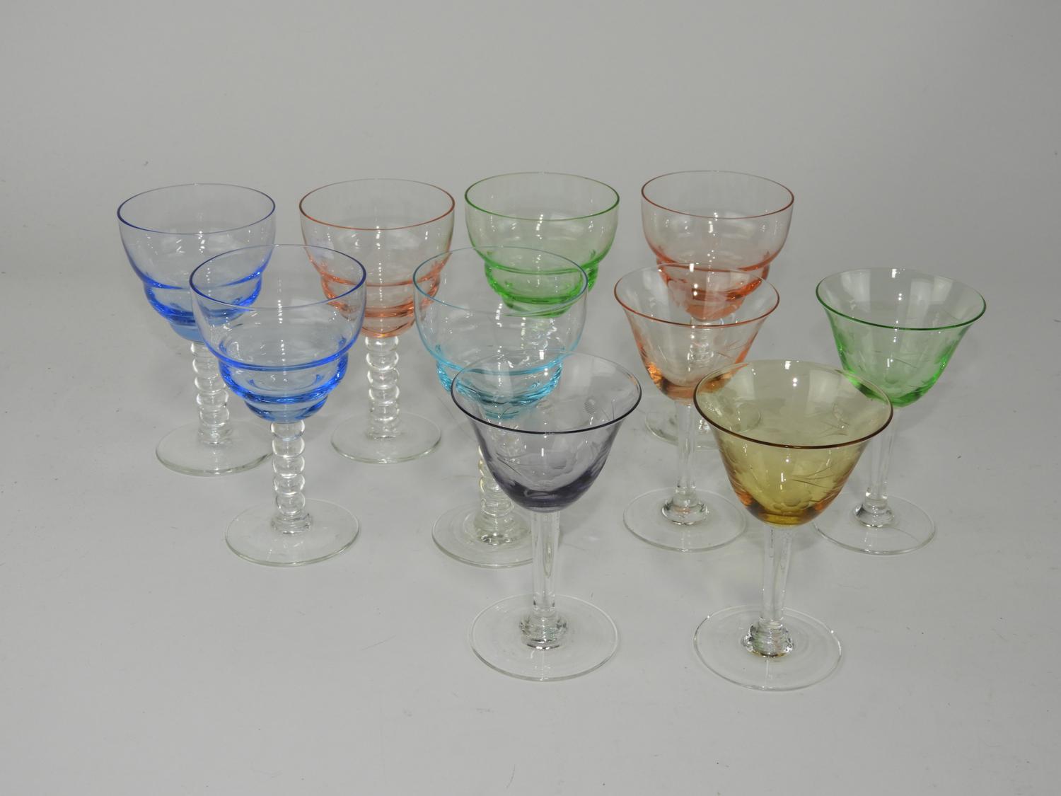 lot of colored stemware