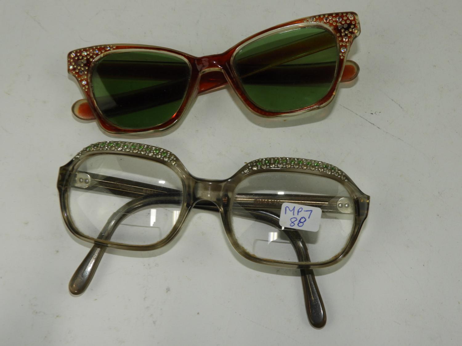 2 1950s rhinestone set glasses