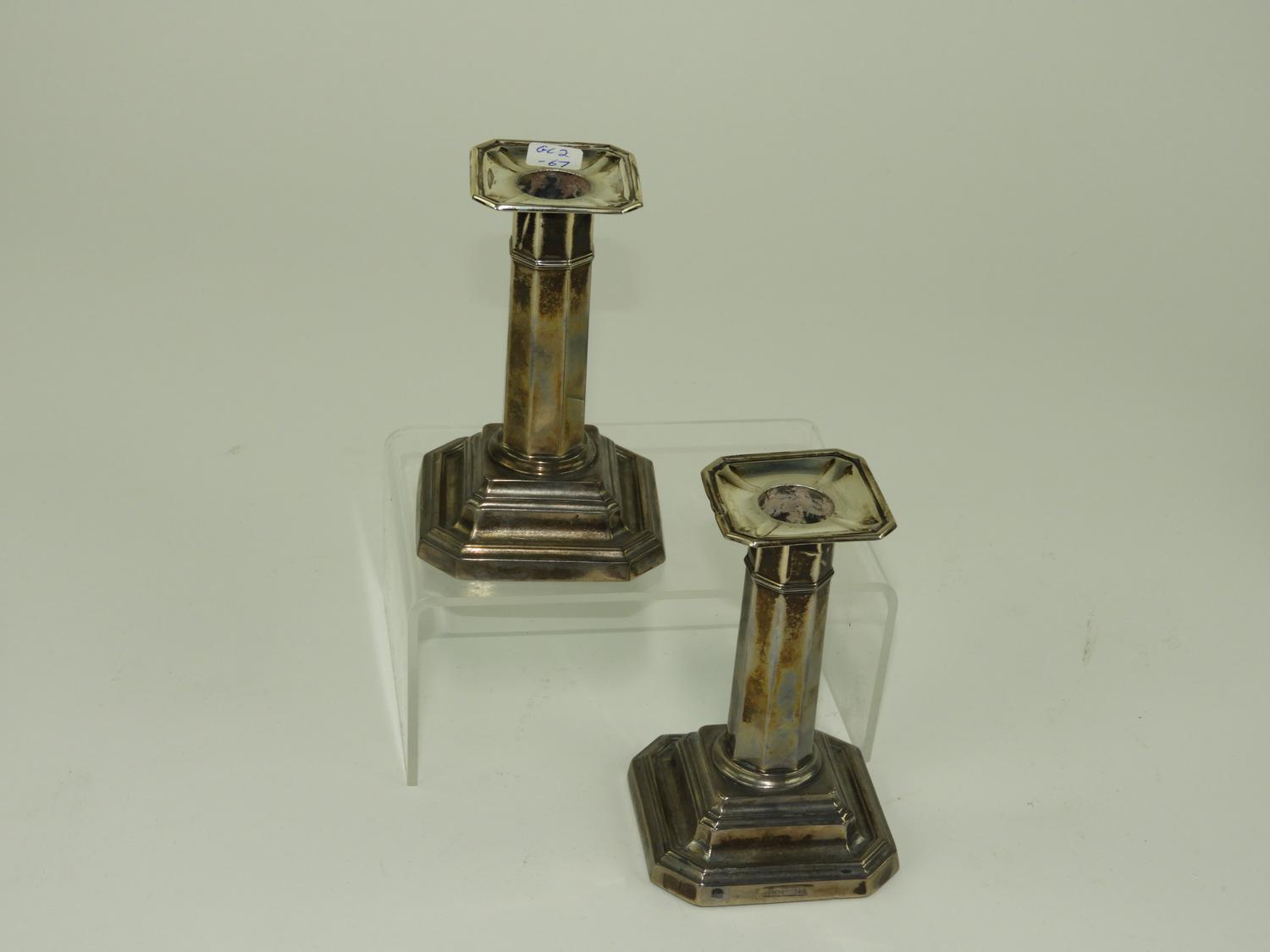 pair of hallmarked sterling silver candlesticks, ht 4 12"