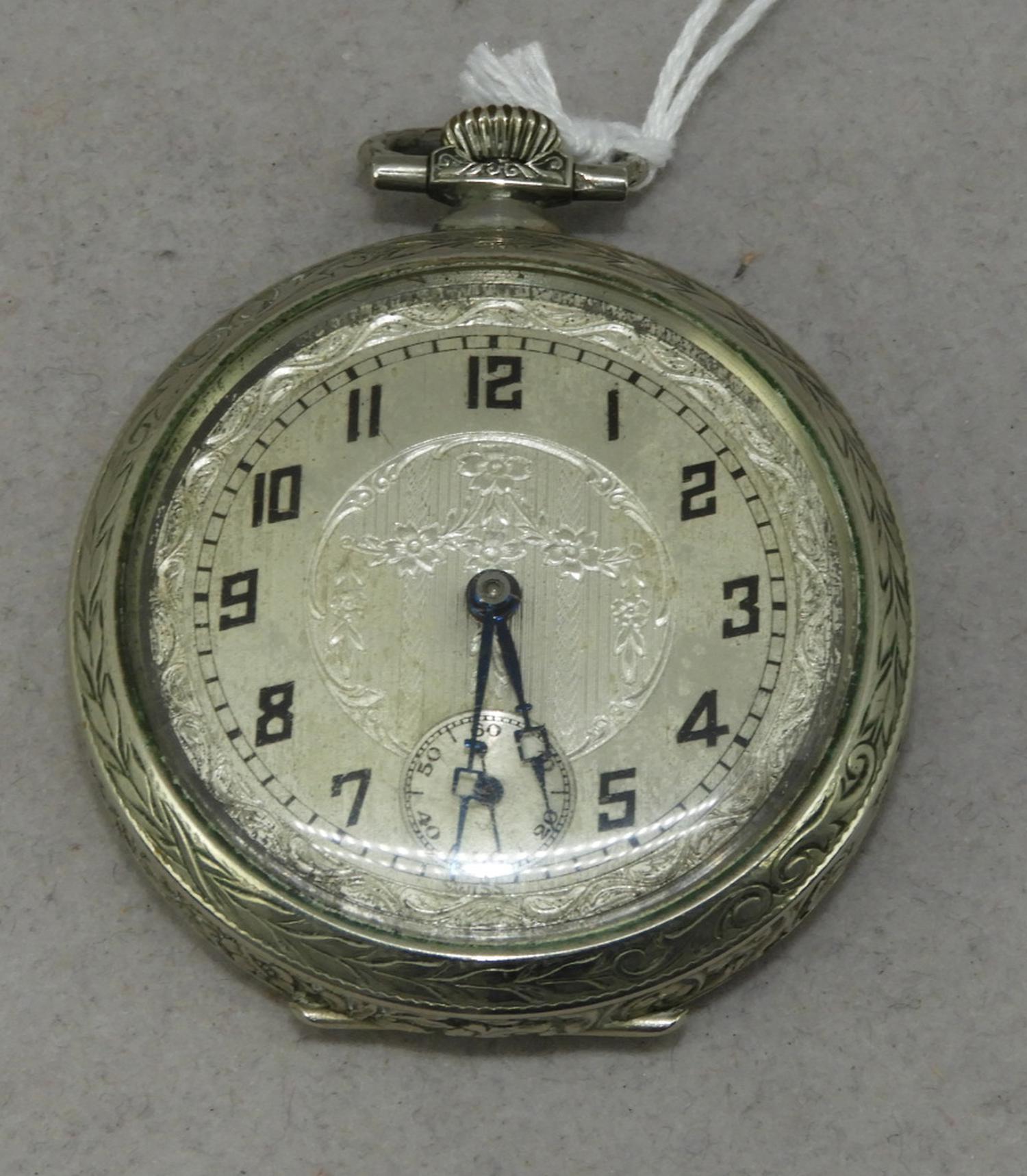 art deco swiss coin silver engraved dial openfaced pocketwatch