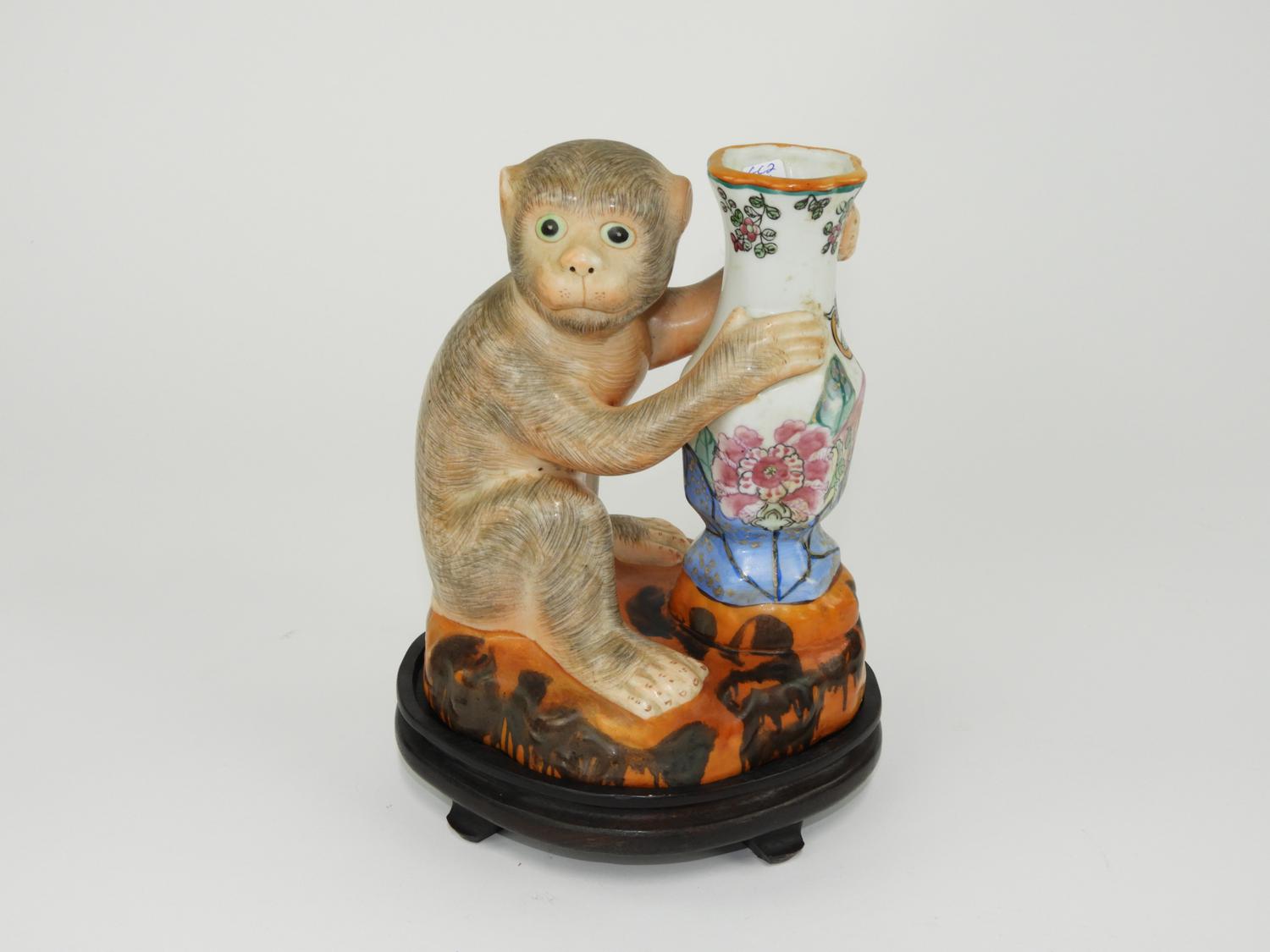 chinese porcelain figural "monkey" vase on stand, ht. 10"