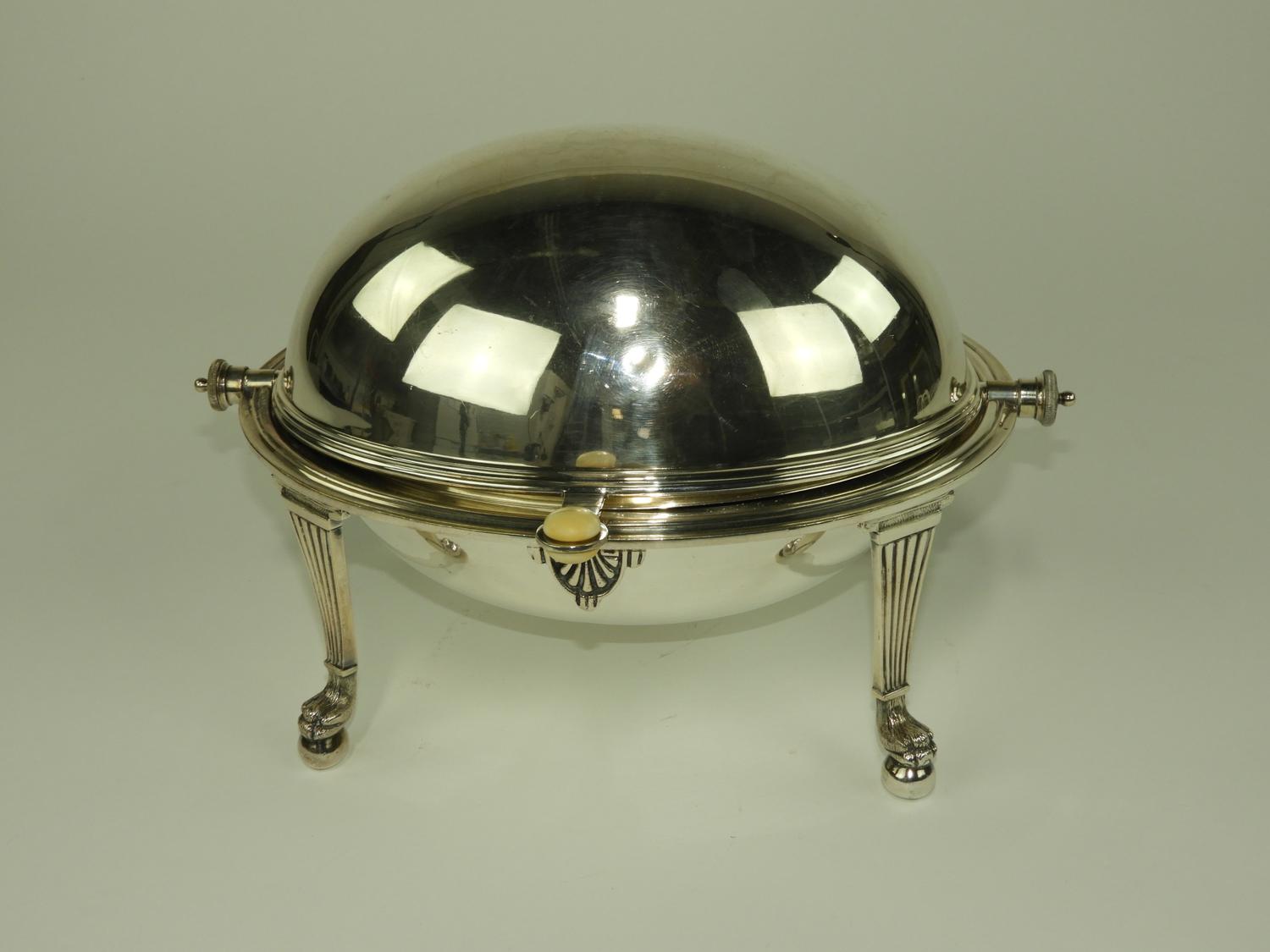 silver plate cylindrical warming dish, john round and sons, ltd. sheffield,