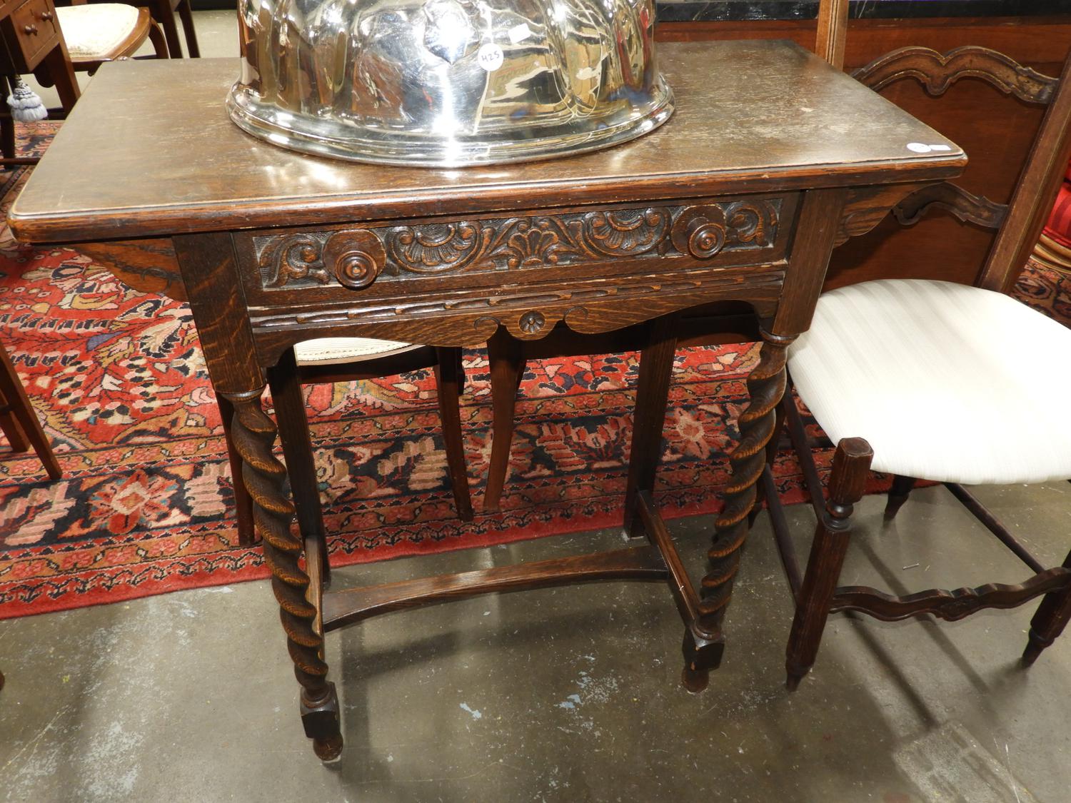 oak single drawers side table with barley turned legs