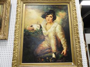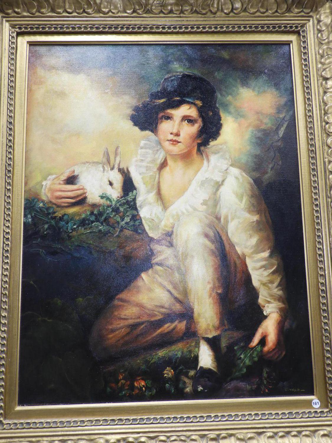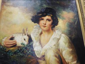 after sir henry raeburn r. a. bears signature sykes, 36" x 28", "boy and rabbit"