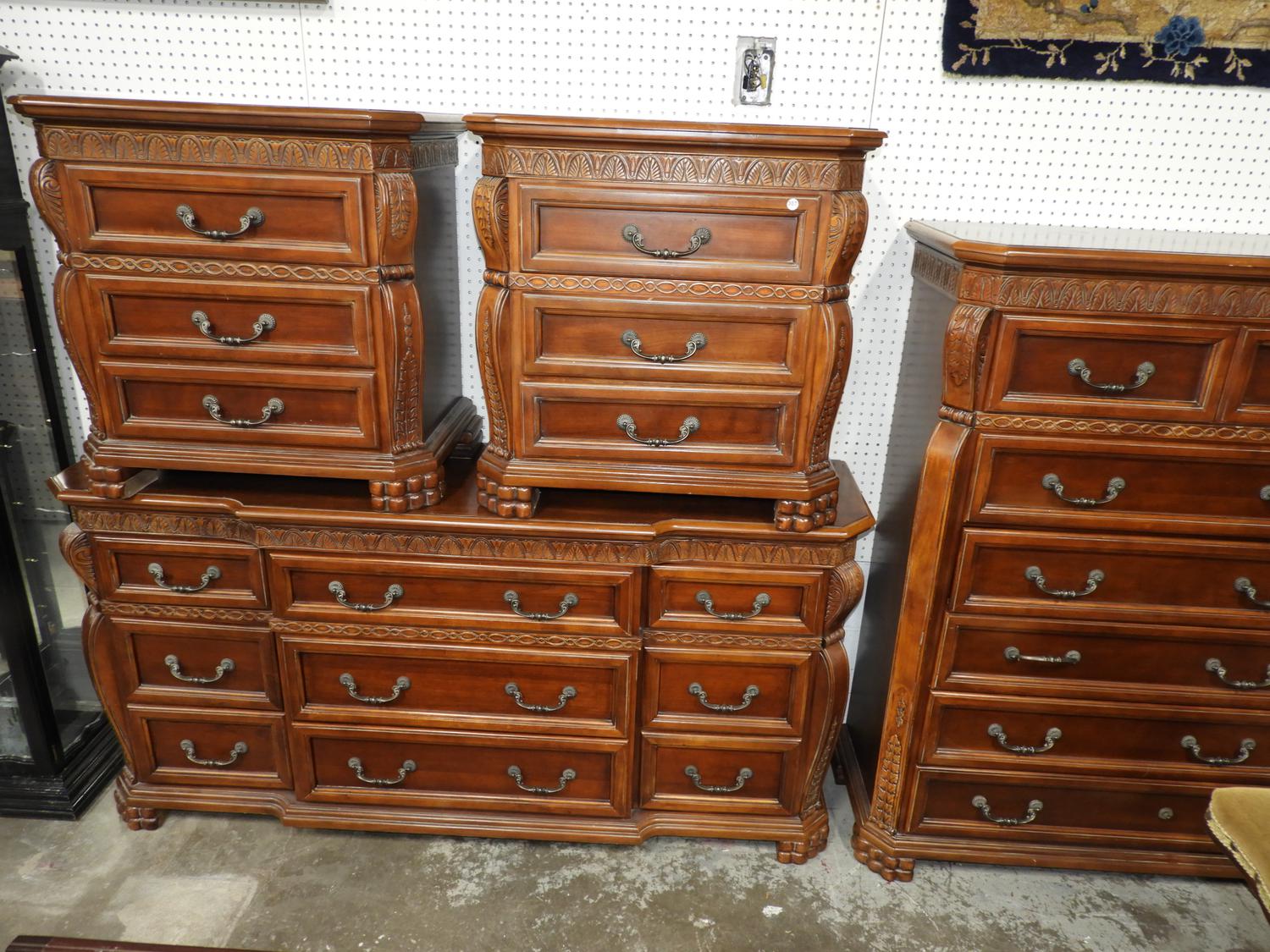 four piece mahogany finish bedroom suite.