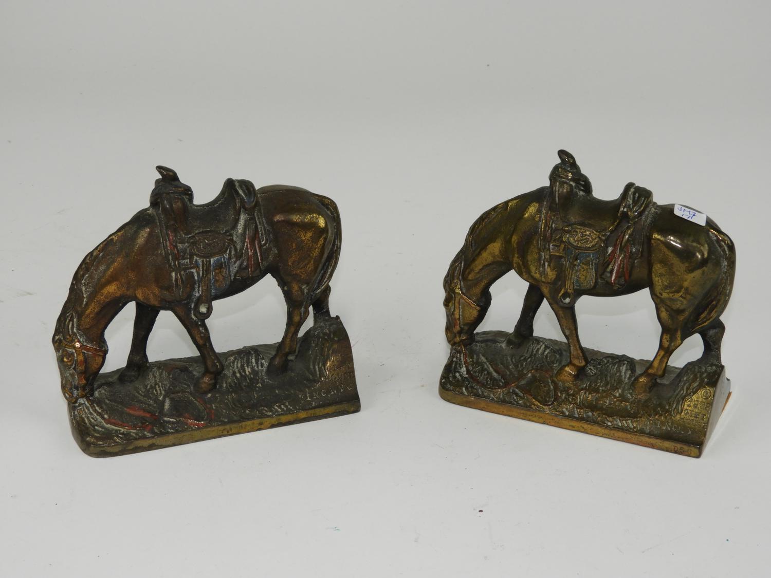 pair of brass horse bookends