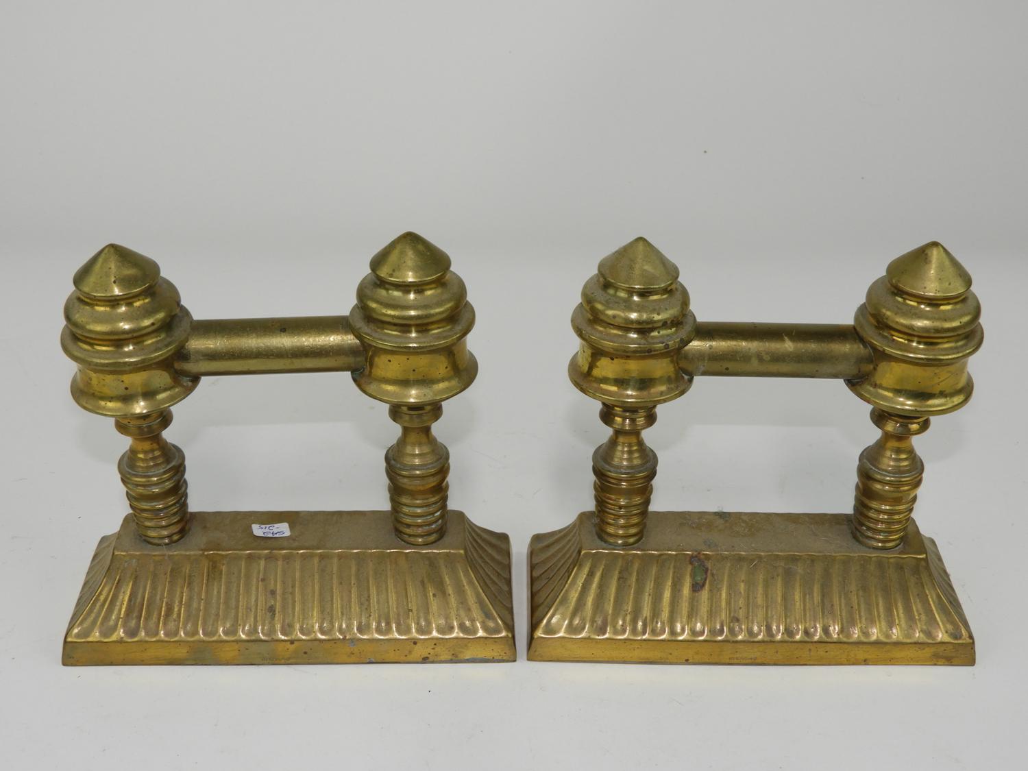 pair of brass andirons.