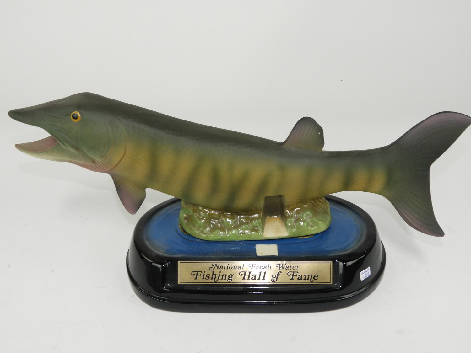 american novelty fish wiskey decanter by james b. beam, 8" x 17"